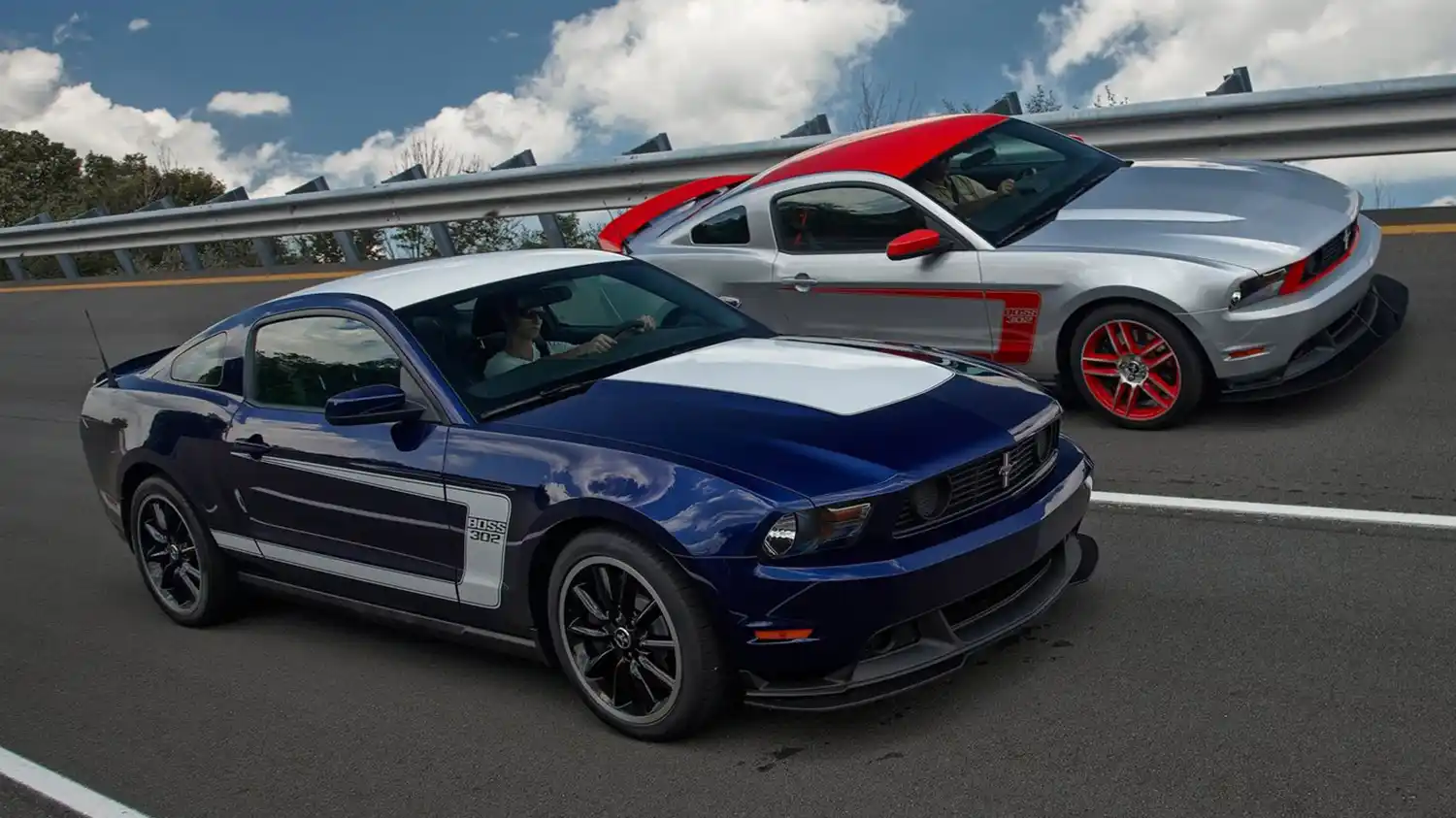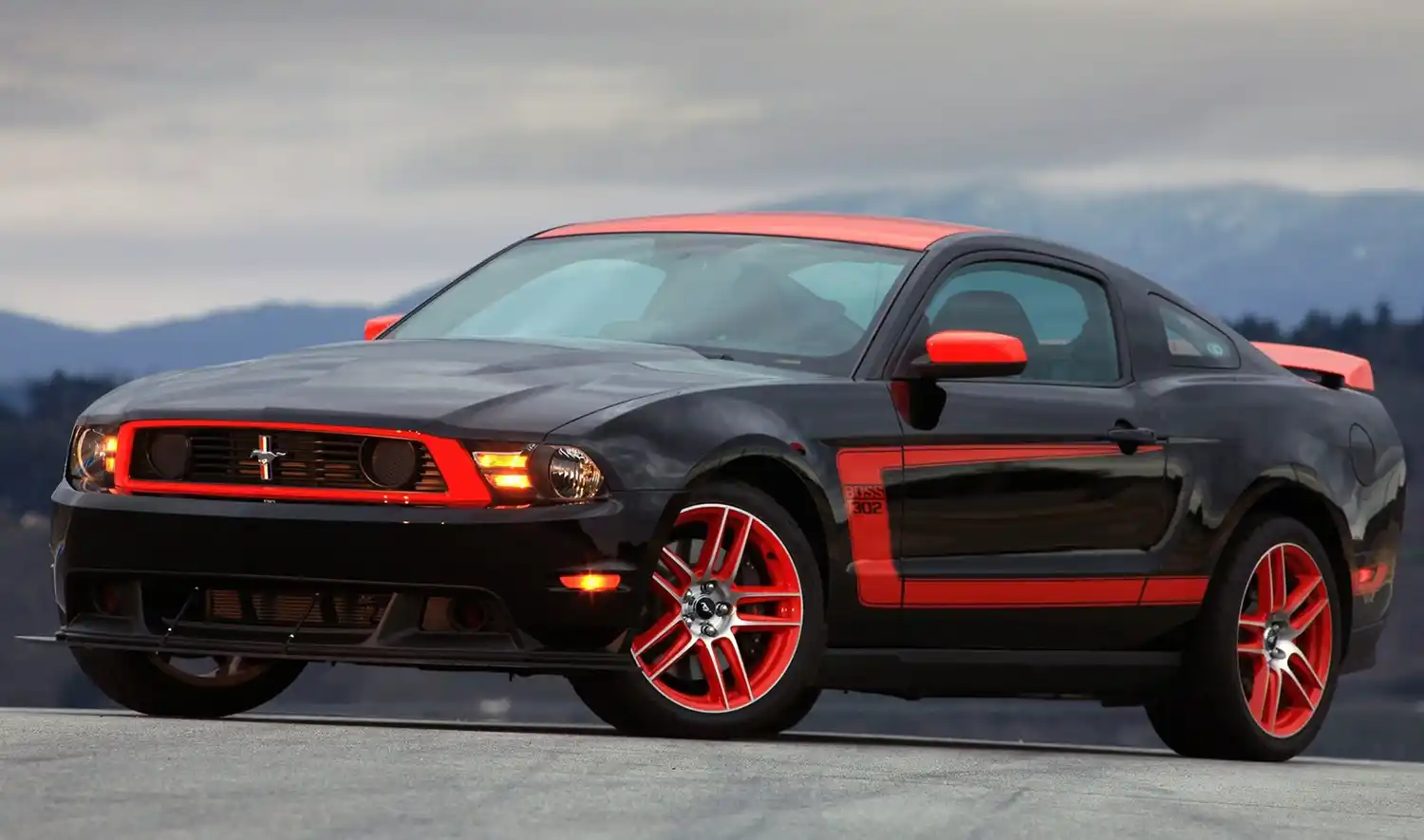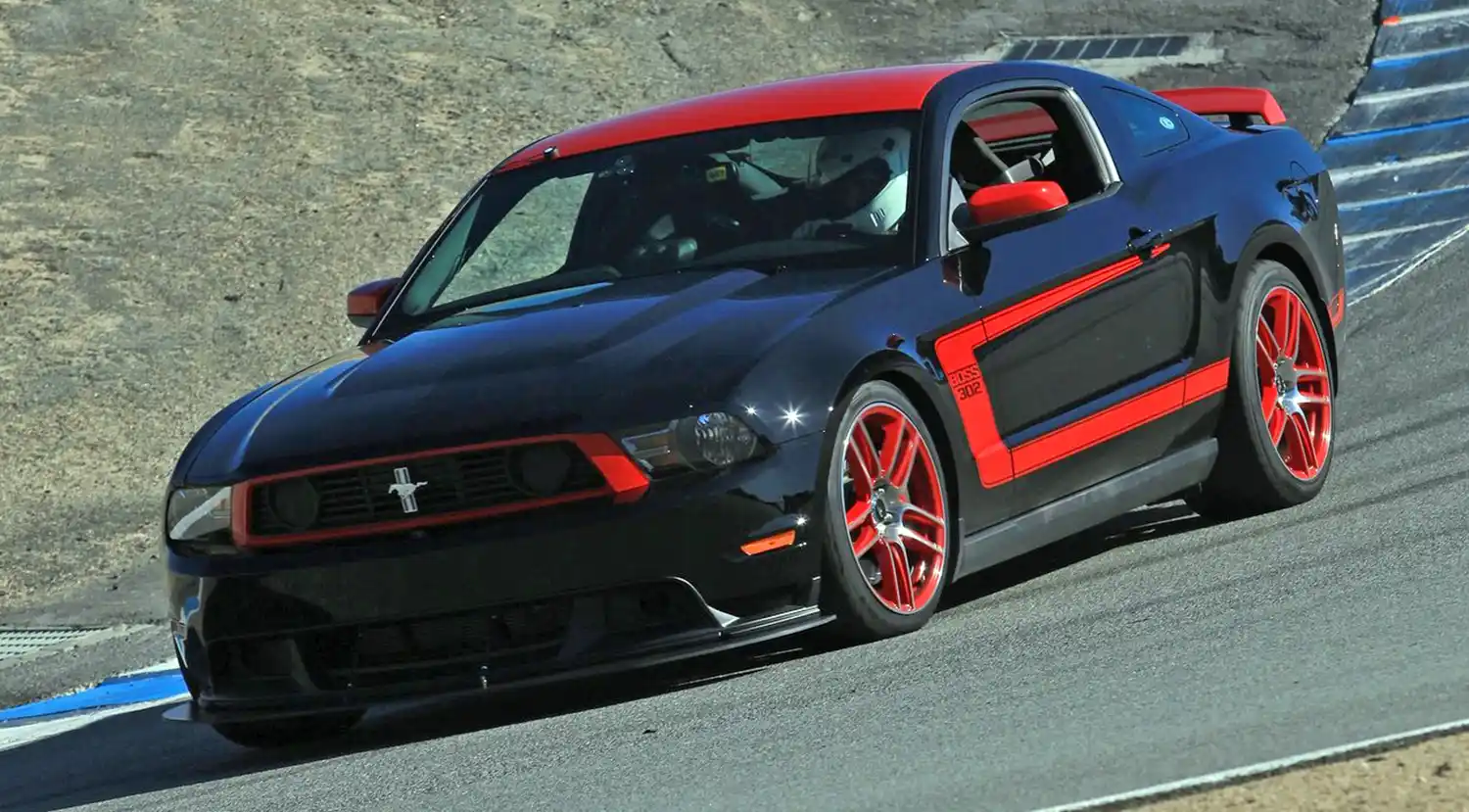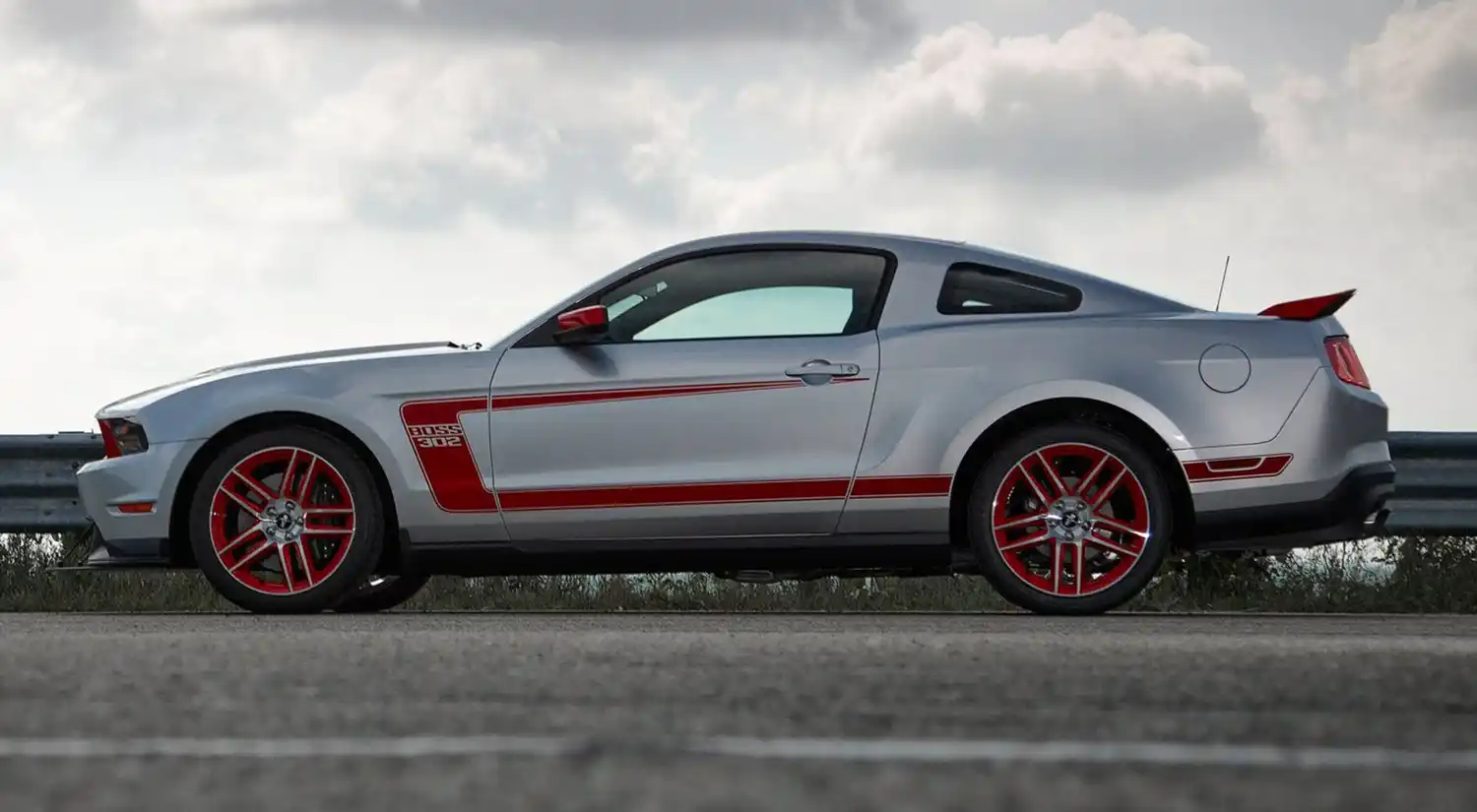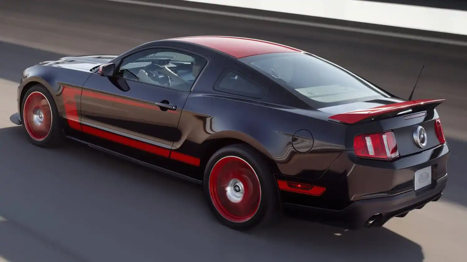 As a race car should, Ford Mustang Boss 302 models with the Laguna Seca package look like nothing else on the road. A bright red C-stripe offsets either Black or Ingot Silver paint, and is complemented by a red roof panel. Red also sets off the front grille, mirror caps and rear pedestal spoiler, while Laguna Seca rear badging and unique two-tone red and silver wheels complete the transformation.