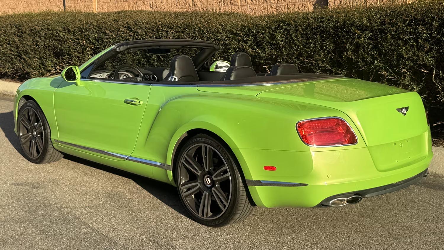 The 2014 Bentley Continental GT Convertible represents a vibrant departure from the traditional muted tones usually associated with British luxury. This specific example wears a factory special order Electric Green Pearlescent paint that ensures it stands out in any high-end collection. With just 25,825 miles on the odometer, the vehicle has been sparingly used and meticulously maintained by its previous owners. It combines the effortless power of a twin-turbocharged V-8 with the refined serenity of an open-top grand tourer. This car offers a rare opportunity for an enthusiast to own a modern classic with an incredibly unique visual identity. Every detail reflects the bespoke craftsmanship that has made the Continental range a global benchmark for luxury.