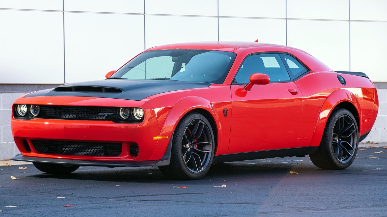 Black cloth bucket seats feature Demon embroidery and maintain a purposeful tone. Equipment includes a power-adjustable driver’s seat, rearview camera, and dual-zone automatic climate control.