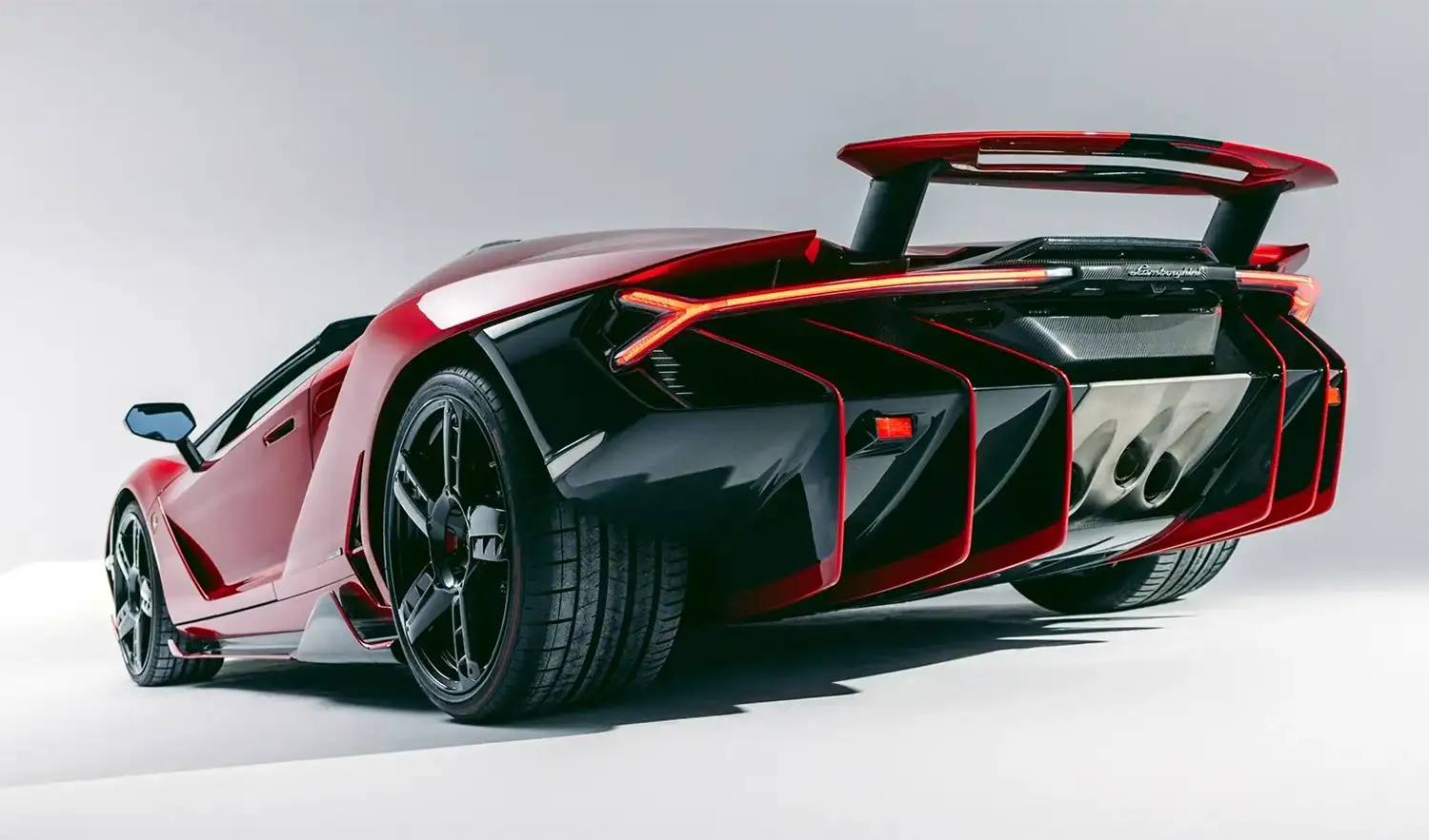 Unveiled as a hard-top coupé at the Geneva International Motor Show in March 2016, the Centenario retained the carbon fibre monocoque and sub-frames of the Aventador. The 6.5-litre V-12 engine was also employed, albeit further developed to produce some 770 PS at 8,500 rpm, an increase of 20 over the hitherto flagship Aventador SV variant. Such prodigious power was transmitted via a paddleshift-actuated seven-speed “ISR” gearbox and electronically controlled four-wheel drive system. The former’s novel gear pre-engagement mechanism and carbon fibre synchro rings facilitated gearshifts in just 50 milliseconds. However, despite the car’s 350 km/h top speed and sub-three second 0 to 100 km/h capability, due attention was also paid to practicality, with three distinct driving modes of Strada, Sport, or Corsa available to the driver.