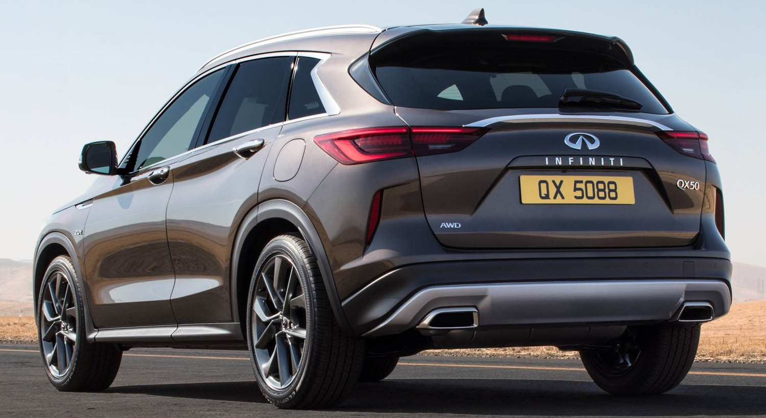 An updated BLACK EDITION Package adds daring touches to the QX50 LUXE STYLE AWD model, including 20-inch wheels in dark chrome for serious curb appeal, black exterior mirrors, an imposing dark chrome radiator grille, dark chrome back door finisher, interior headliner in black tricot, and a gloss black front fender outlet garnish.