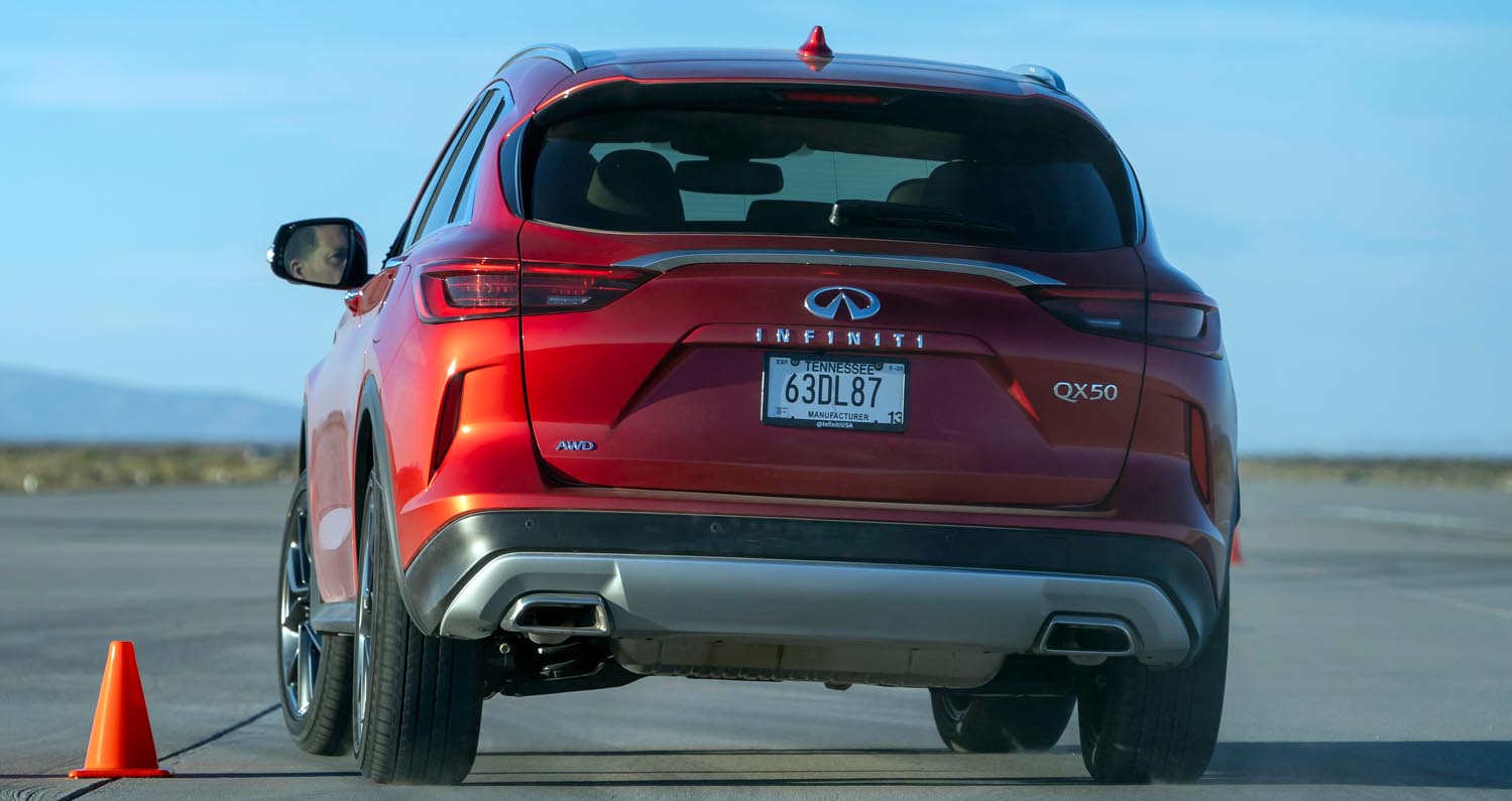When equipped, Intelligent All-Wheel Drive can direct up to 50% of the QX50’s available power toward the rear wheels for enhanced all-weather confidence. A standard shift-by-wire system is more compact than traditional mechanical linkages, freeing up interior space while offering quicker shifts when engaged in manual mode.