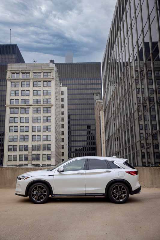 Along the body sides, INFINITI’s signature crescent-shaped rear roof pillar visually extends the crossover’s roofline, arching elegantly toward a standard power rear liftgate. QX50 AUTOGRAPH and SENSORY grades include a motion-activated sensor for hands-free liftgate operation.