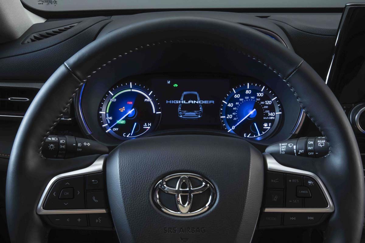The 2022 Highlander is equipped with eight airbags, including side curtain airbags for all three rows. Toyota’s Star Safety System includes Vehicle Stability Control (VSC), Traction Control (TRAC), Electronic Brake-force Distribution (EBD), Brake Assist (BA), Anti-lock Braking System (ABS) and Smart Stop Technology (SST). Hybrid models will receive Vehicle Dynamics Integrated Management (VDIM) as well. VDIM provides integrated control of the ABS, brake assist, TRAC, VSC, hill-start assist control and EPS systems. It helps to maintain vehicle stability when swerving on slippery road surfaces by controlling the brakes, hybrid system output and steering assist.