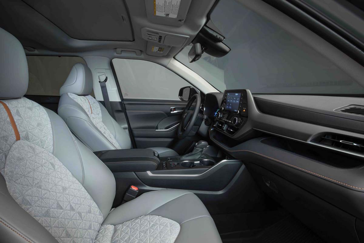 Designed with sophistication in mind, the new Highlander Hybrid Bronze Edition, available in either Cement (exclusive to Bronze Edition), Wind Chill Pearl (new for 2022 Highlander) or Midnight Black Metallic exterior colors, includes bronze-colored accents on the exterior and interior, including 18-inch bronze wheels, bronze interior stitching, illuminated bronze door sills and mid-century, modern-inspired SofTex-trimmed seats with fabric insert and bronze stitching. Also exclusive to the Highlander Hybrid Bronze Edition are unique floor and cargo mats embroidered with a special bronze logo. Taking inspiration from contemporary crafted interiors to create a premium ambience, details include soft-touch surfaces and a tailored look with stitching that continues from the door trim to the instrument panel. The dash integrates the multimedia and HVAC controls in an elegant and functional way.