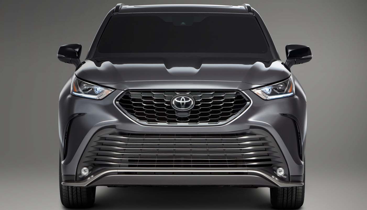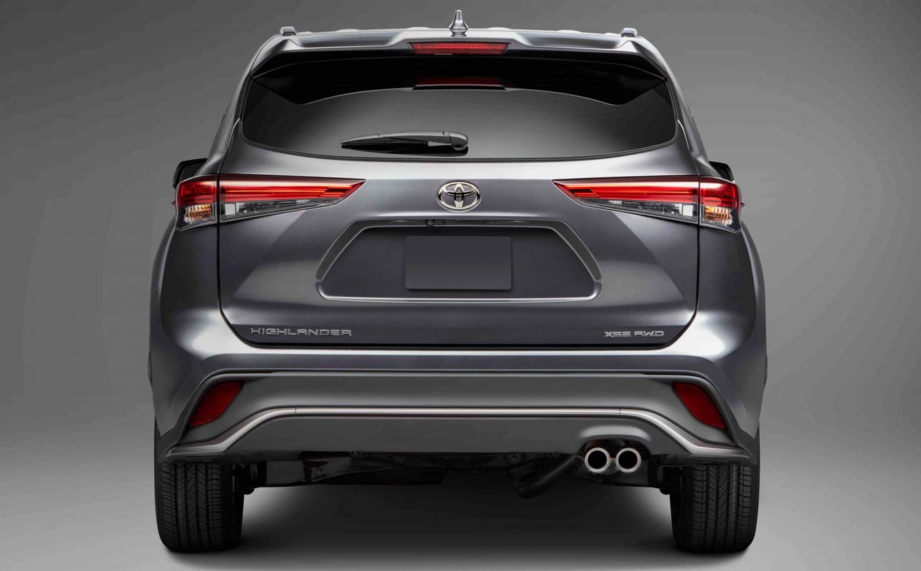To make the XSE grade, Highlander received a bumper-to-bumper style makeover. The front fascia, grille and lower spoiler are exclusive to this model and impart a more aggressive stance. The restyled upper grille joins a much larger lower air intake integrated into the new bumper, with a spoiler below that. Unique headlamps feature black accents and light-strip DRLs.
