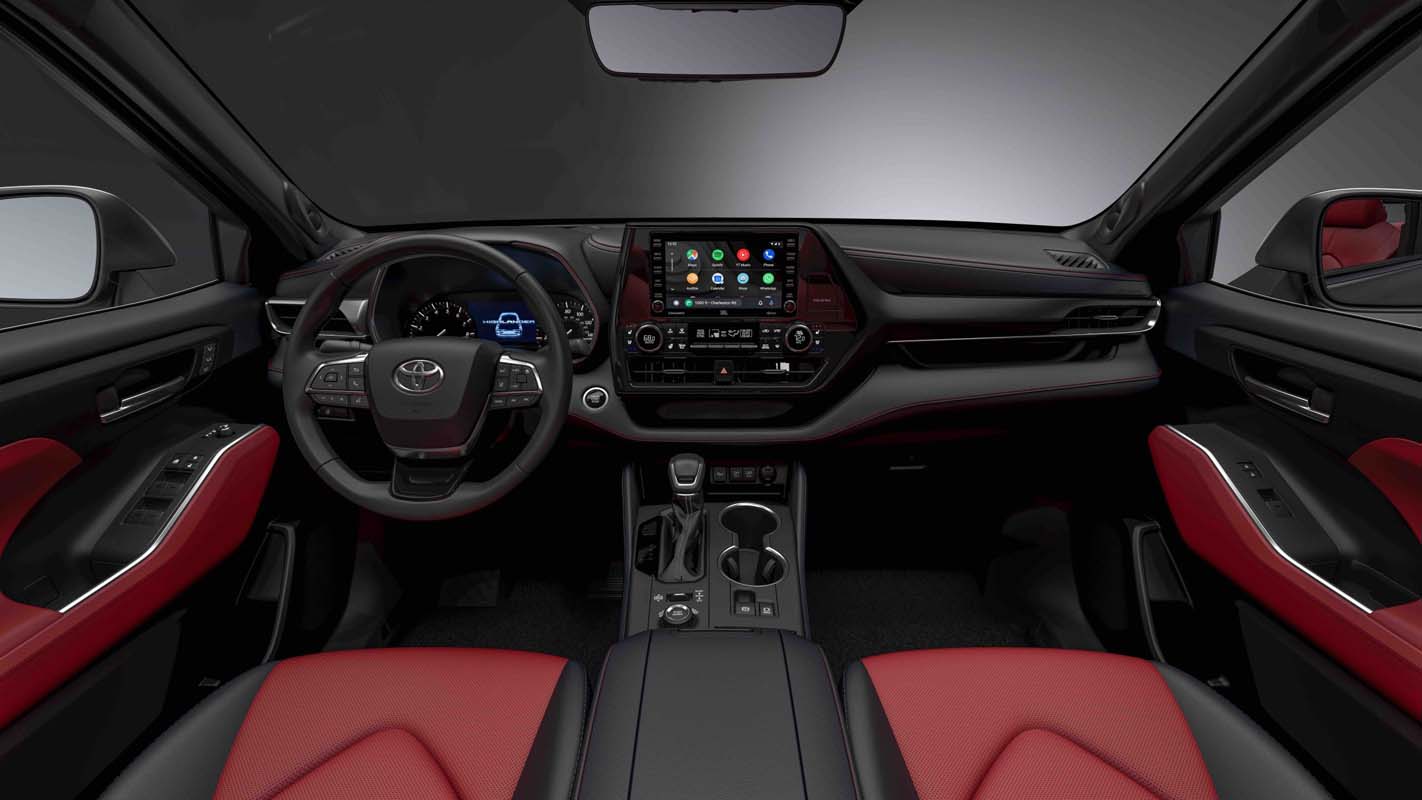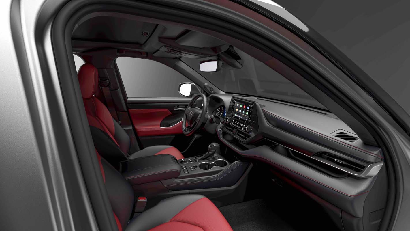 Inside, the Highlander XSE rocks black SofTex®-trimmed seats with fabric inserts, while ambient lighting and carbon-fiber finish on the instrument panel sets the sportier mood. A striking two-tone red and black leather-trimmed interior with red-stitched instrument panel is available at no additional cost. The 2022 Highlander XSE comes ready to take on all devices with Android AutoTM, Apple CarPlay® and Amazon Alexa compatibility, as well as five USB ports and an all access 3-month trial of SiriusXM® Platinum Plan.