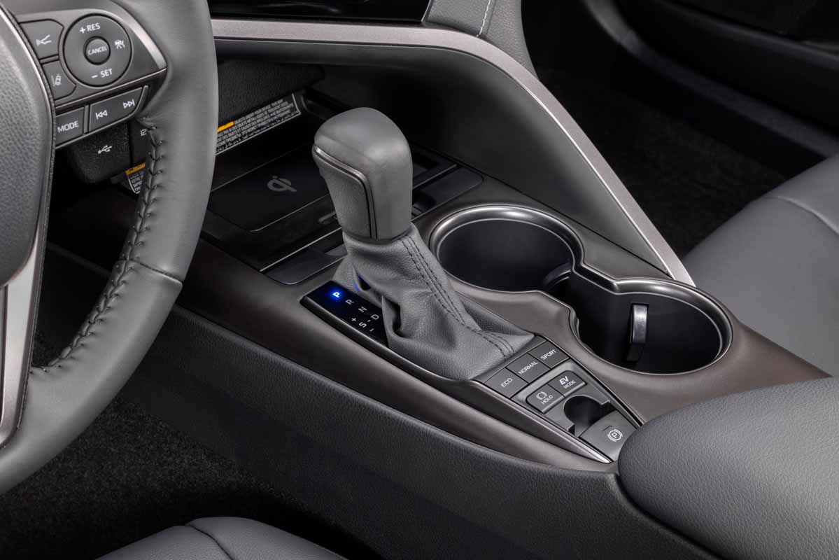 In all Camry gas grades, both the 2.5-liter engine and the 3.5-liter V-6 are teamed with the Direct Shift eight-speed automatic transmission that delivers satisfyingly crisp-yet-smooth quick-shifting to deliver an exemplary blend of performance and refinement. Close mid-range ratios improve passing performance, while the wide range of torque converter lock-up yields a more direct driving feel and contributes to fuel efficiency. Control logic optimizes precise matching of engine torque on downshifts for smoother transitions.
