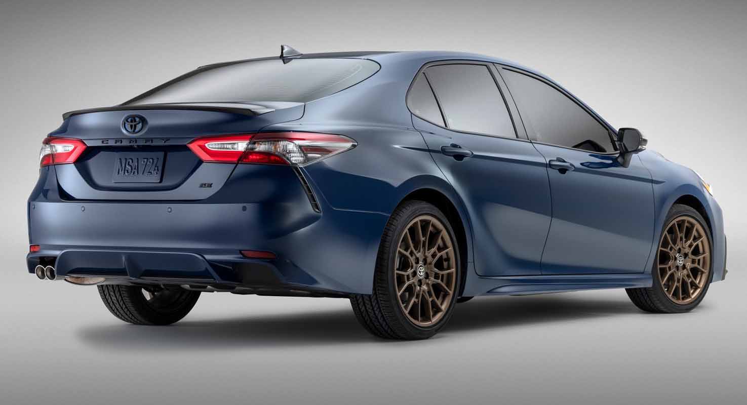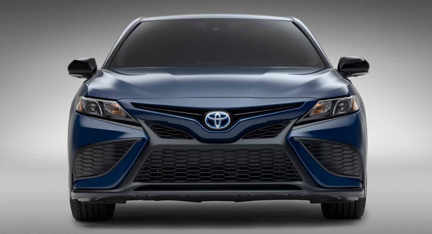 The Nightshade Special Edition gives the 2023 Camry the look and stance of a premium sport sedan. The 2023 Camry Nightshade is available in SE grade front-wheel drive, all-wheel drive and hybrid models. The black front grille with Sport Mesh insert is borrowed from the Camry TRD model. The Nightshade also wears a black rear spoiler, mirror caps and exterior badges and, for 2023, adds black-trimmed headlights and taillights for a stronger dose of attitude.