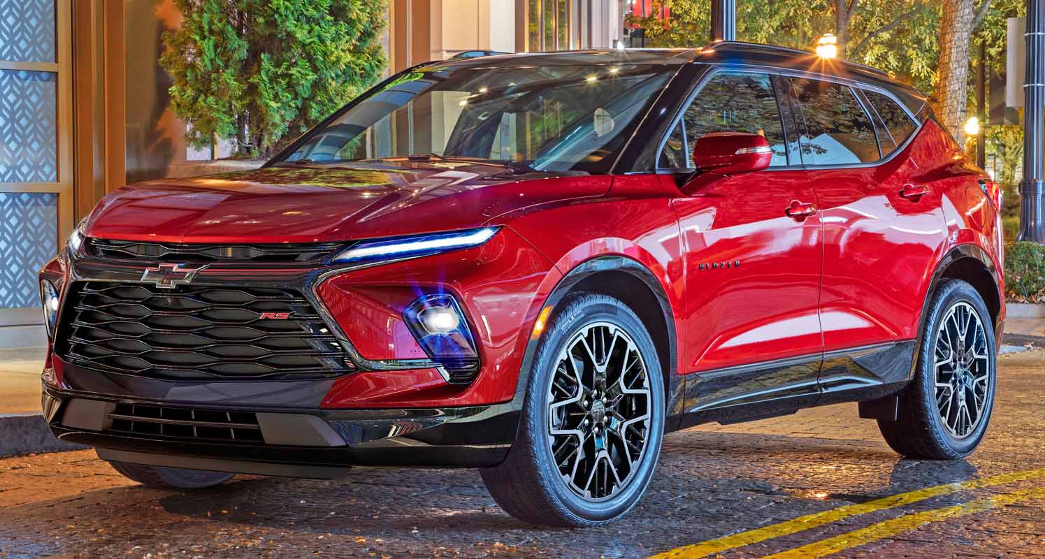 Chevrolet Blazer has long been known for its head-turning good looks which have been amplified for 2023 in Chevy’s legendary sport and performance trim, RS. Fresh for 2023, the Blazer has a new front fascia and grille design to emphasize the sleek look, punctuated by new LED headlamps and LED daytime driving lights and taillamps, giving it an athletic look from all angles.