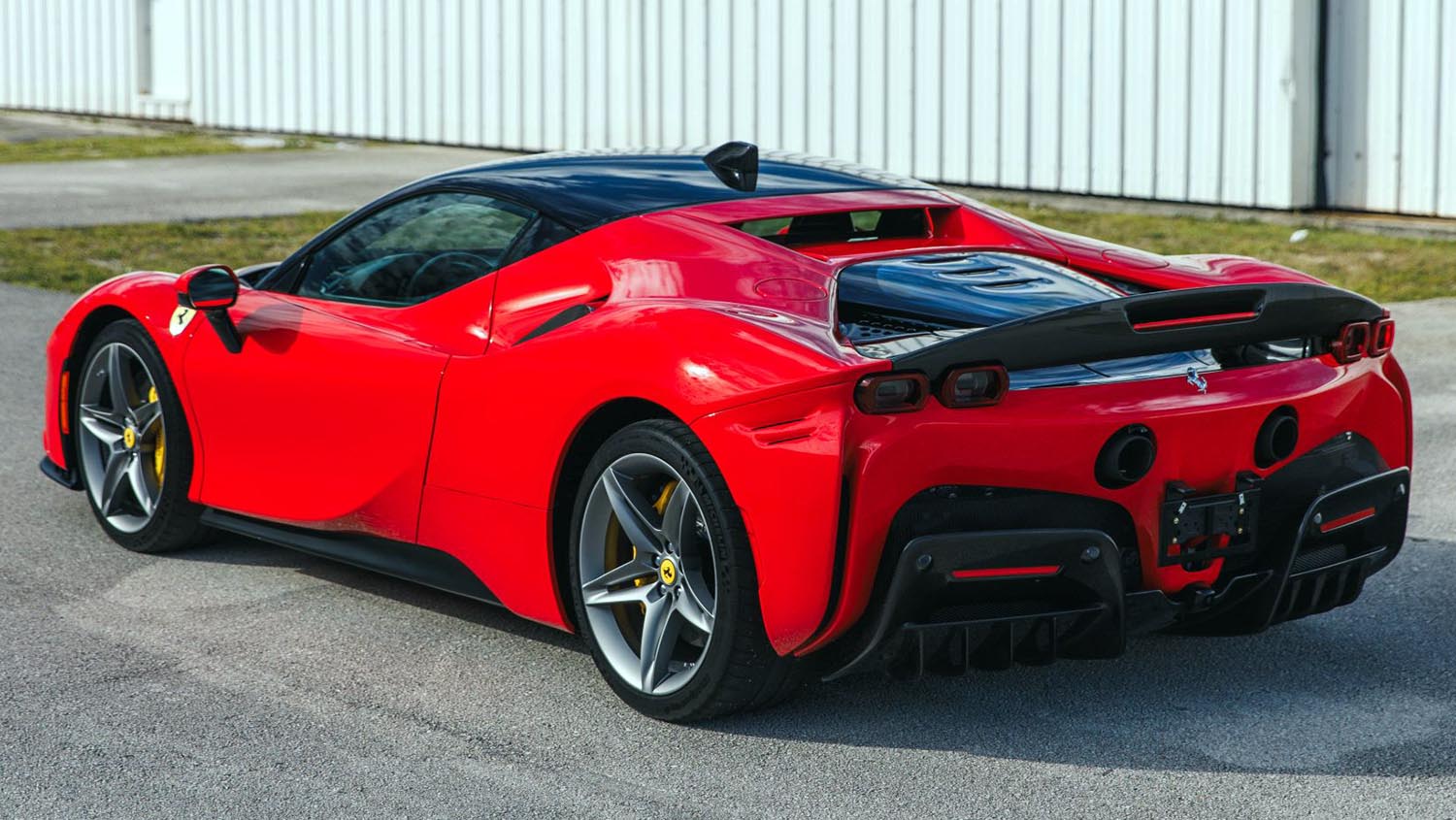 The visual presence of this 2023 Ferrari SF90 Stradale is quintessential Ferrari excellence. Rosso Corsa paint highlights the active aerodynamics and Formula 1 inspired body lines perfectly. Inside, the Nero leather cabin is filled with carbon fiber accents and racing technology. Carbon fiber racing seats keep the driver firmly in place during high-G maneuvers on track. A digital instrument cluster and head-up display provide all vital data without distraction. Yellow brake calipers behind forged wheels add a brilliant pop of contrasting color to the exterior.