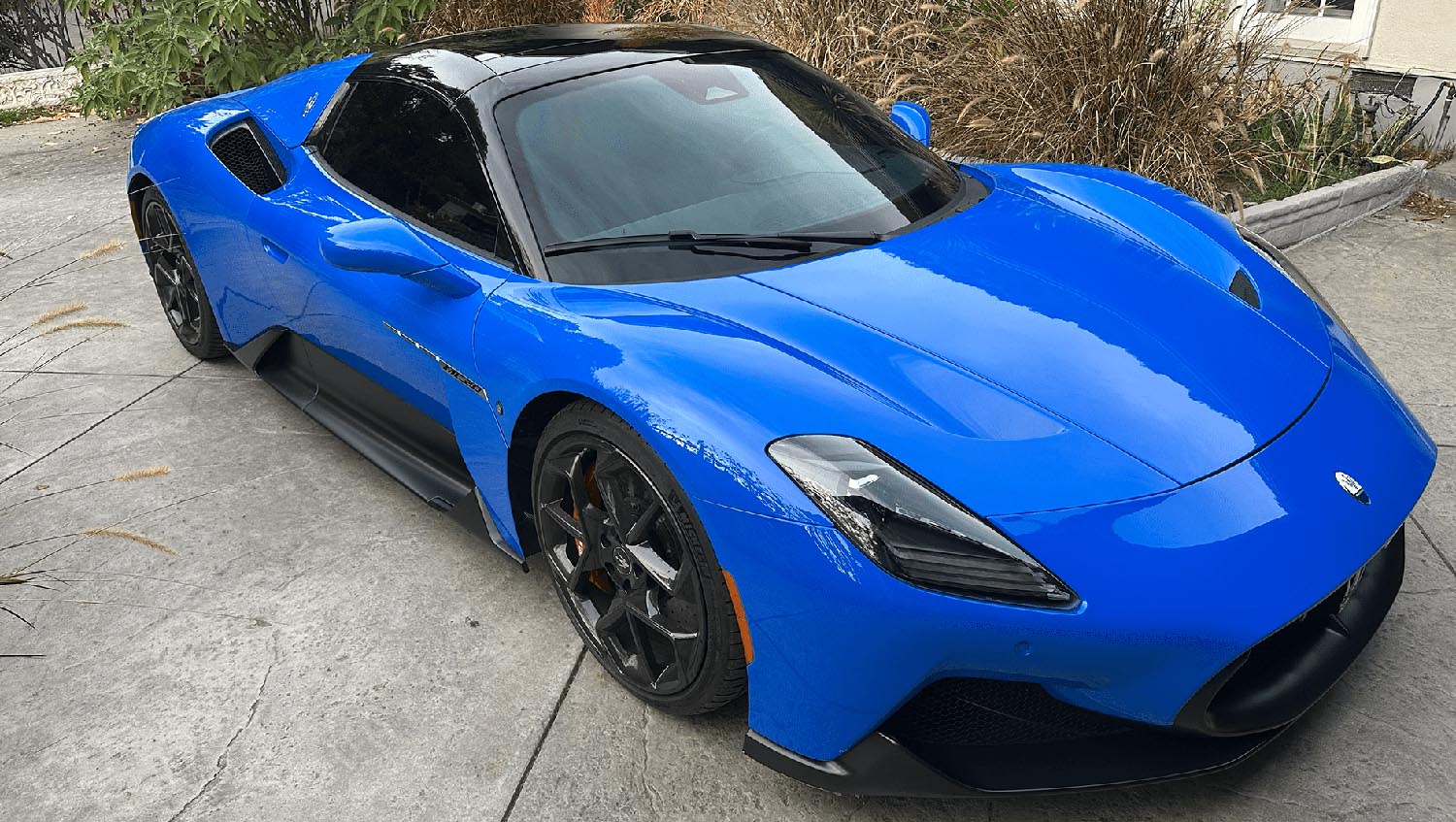 The heart of the 2023 Maserati MC20 Cielo is the 3.0-liter Nettuno V6. This twin-turbocharged engine produces 621 horsepower and 538 lb-ft of torque factory-rated. Power reaches the rear wheels through an eight-speed dual-clutch automatic transaxle. An electronic limited-slip differential ensures that the power is distributed efficiently through corners. Recent maintenance in 2025 included new spark plugs and fresh transaxle fluid.