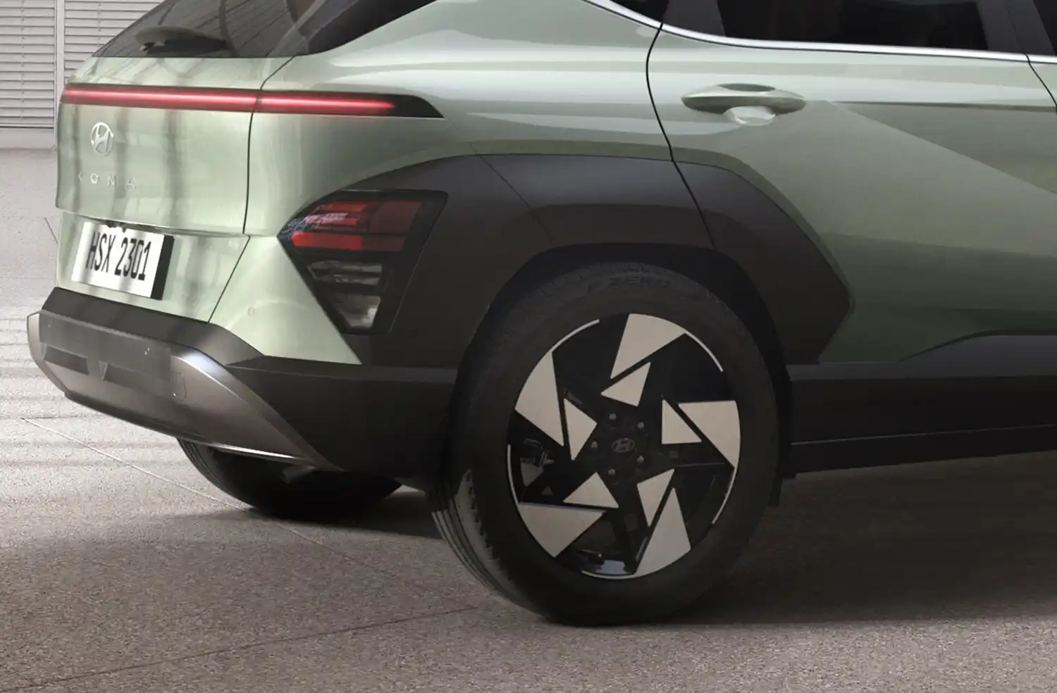 The SUV’s sporty character is embodied by rugged wheel arch cladding with integrated front and rear lamps, side panels with dynamic wedge proportions and characteristic chrome molding that runs from the belt line to the spoiler. Its specially designed spoke 19-inch wheel design is a first for KONA.