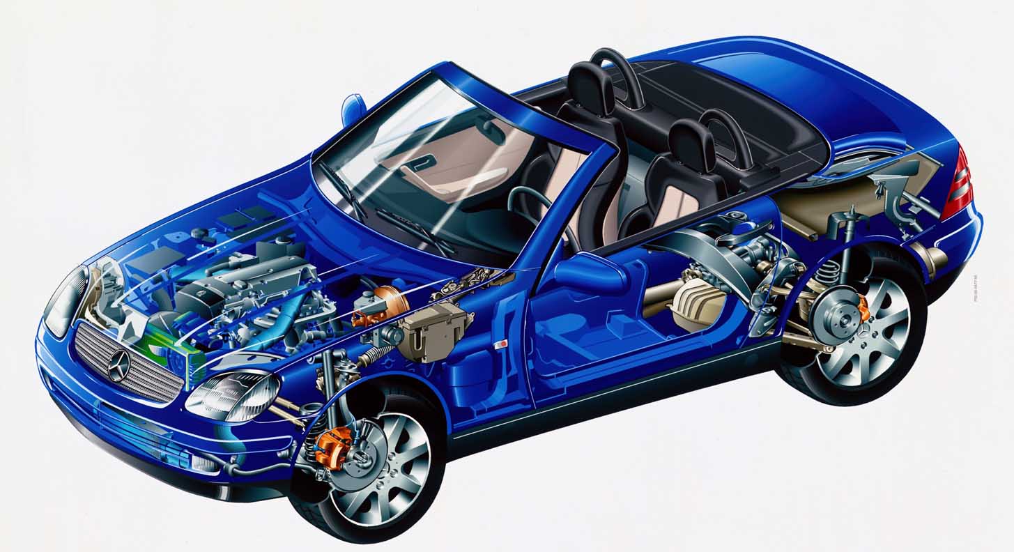 The roadster was given its name during the design phase, when engineers referred to it as the “SL kurz” (“compact”) in a tribute to the Mercedes-Benz SL. Indeed, the R 170 model series, with a body length of 3,995 millimetres, was around 500 millimetres shorter than the SL Roadsters of the then current R 129 model series.