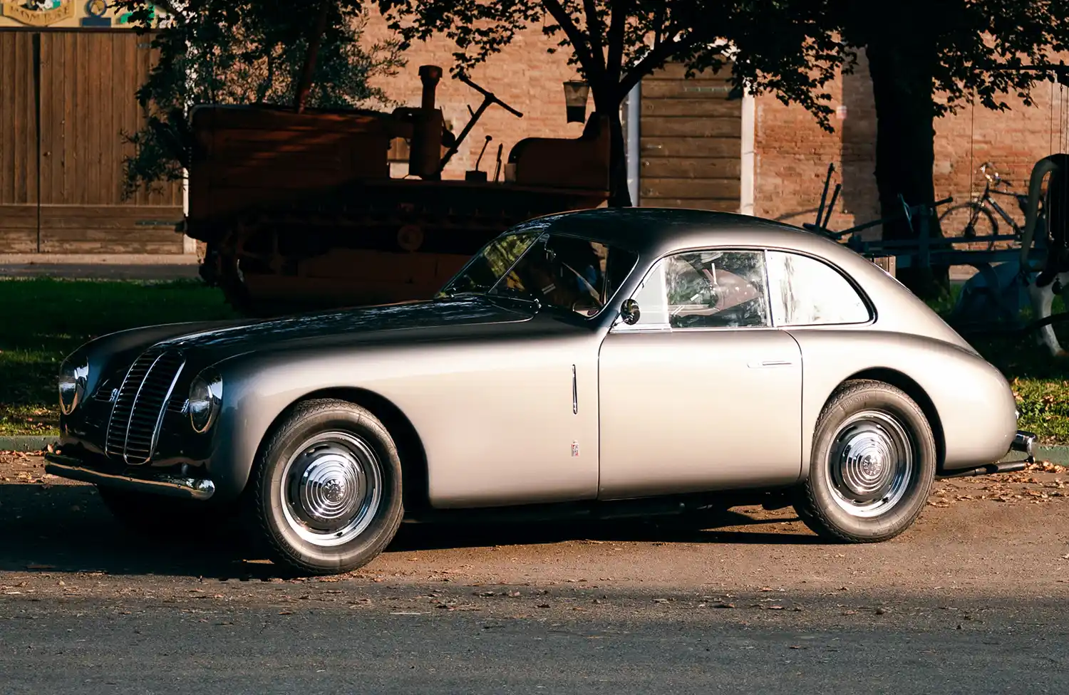 Intended for the Geneva Motor Show, the first model was produced in February 1947 by the Pininfarina bodyshop, bearing its characteristic mechanically operated retractable inside headlights. However, the clearest innovation from the past was its tubular chassis with circular cross-section components, to adopt some of the most fashionable trends at the time.
