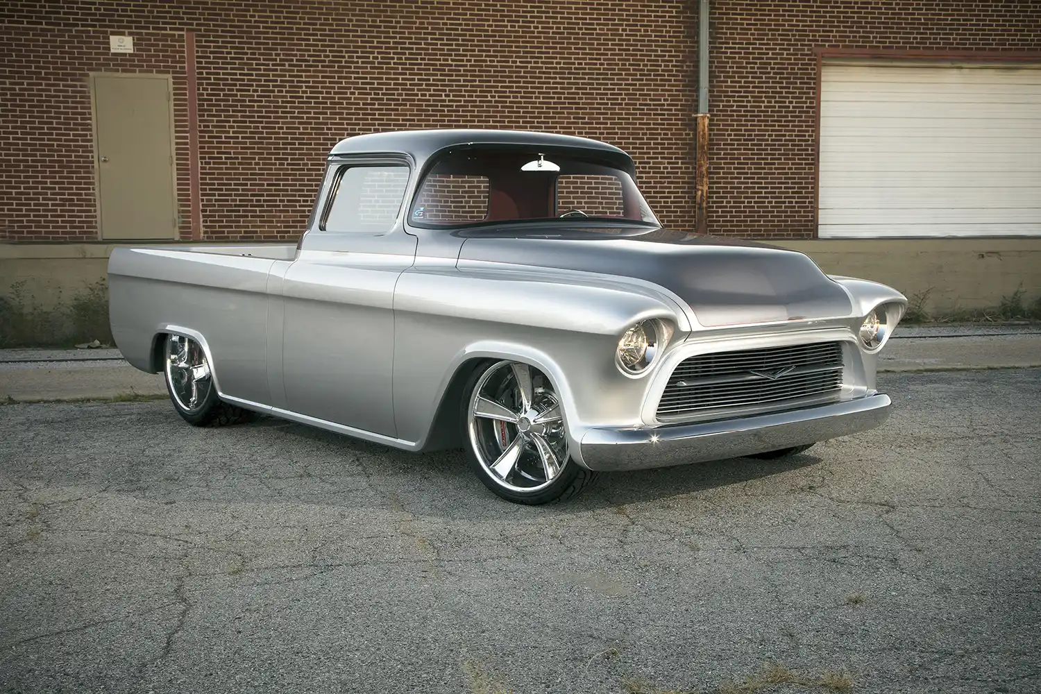 It took 7,000 man-hours and thousands of one-off hand-crafted parts to build this 1957 Chevrolet C-6 Custom Pickup, which sold for $148,500 in Las Vegas in 2011. This truck comes with a 402cid LS3 motor, a complete Corvette C6 suspension and drivetrain with a six-speed transaxle and a full Air Ride suspension. The truck won a GM Design award at SEMA 2009 and a Mothers Choice Award at SEMA 2010.