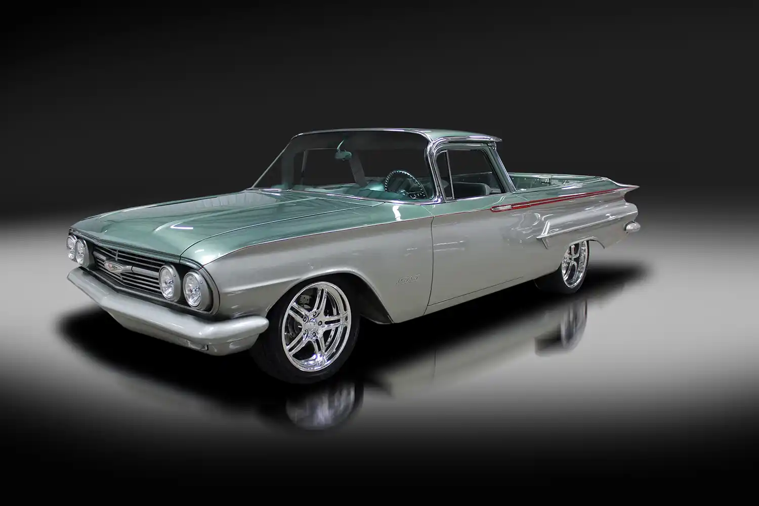 This one-of-a-kind 1960 Chevrolet El Camino Custom Pickup sold for $126,500 in Palm Beach, Florida, in 2017. Nearly every piece of this vehicle has been customized, from its GM ZZ 502ci crate engine with a Ram Jet fuel-injection system to its fully custom leather interior and highly detailed and painted undercarriage.
