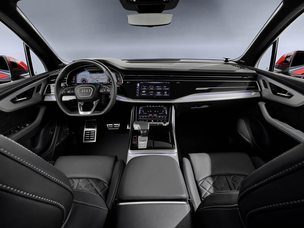 A host of storage compartments, a new compartment in the instrument panel as well as the generous load capacity provide highly functional utility value. Depending on the position of the rear seat backs the luggage compartment on the five-seater version offers between 865 and 2,050 liters (30.5-72.4 cu ft) of capacity – the latter with a flat load area. An electric tailgate is standard; foot-activated gesture control is available as an option. Audi optionally supplies the rear seat bench plus; all three seats can be moved individually fore/aft, the backrest angle can be adjusted, and there is a third seat row with two seats that can be lowered electrically.