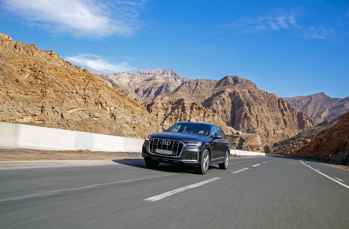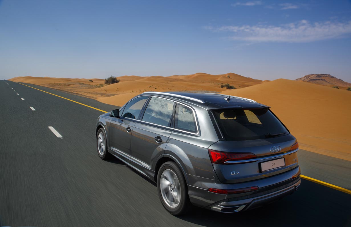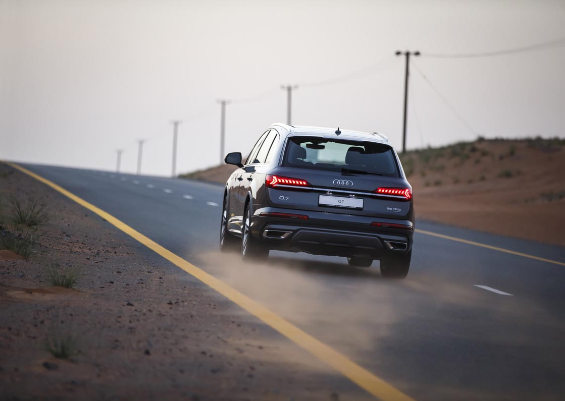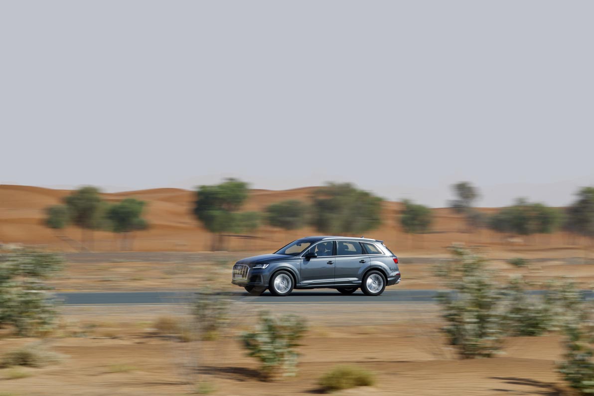 It also provides variable ground clearance and prepares the Audi Q7 with its standard quattro drive for terrain off the beaten track. The appropriate offroad mode can be selected via the Audi drive select dynamic handling system with its seven profiles. Air suspension comes standard on all seven-seater Q7 models. With the S line exterior, there is a slightly firmer adaptive air suspension sport. Because of this, the normal level of the body is 15 mm (0.6 in) lower than with an air spring suspension.