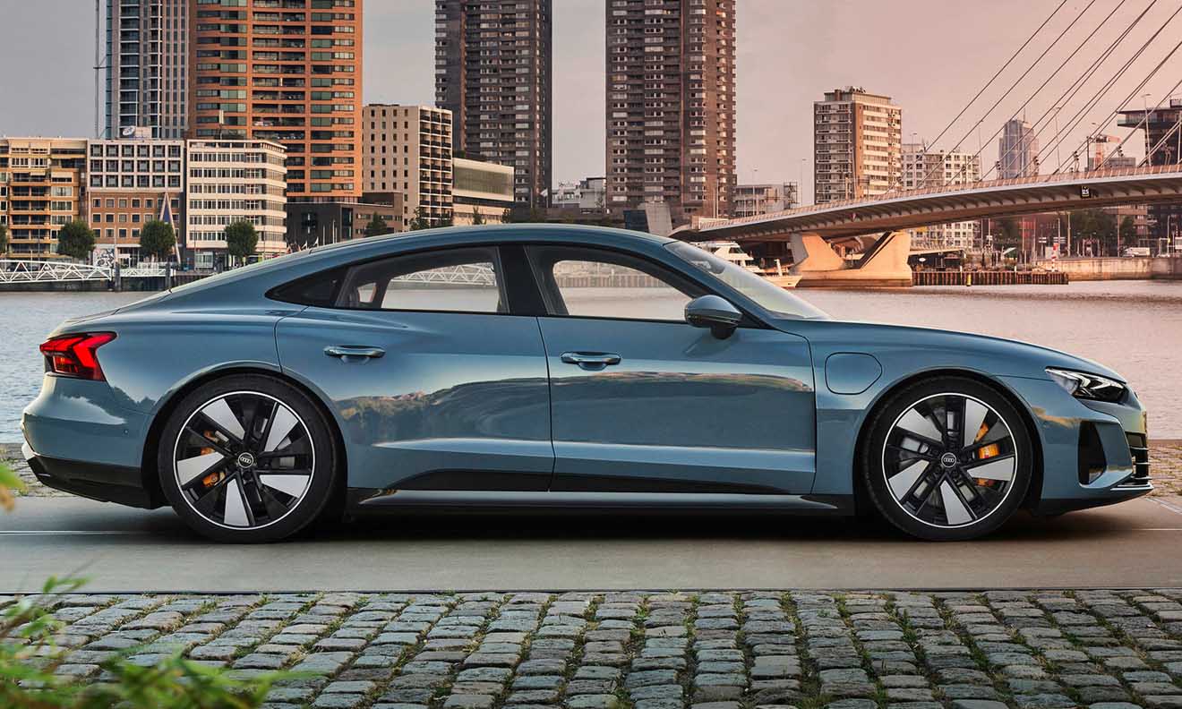 As a gran turismo, the Audi e-tron GT was designed specifically for sportiness and efficiency, and it attains a drag coefficient of 0.24. This excellent value makes a significant contribution to the electric range of up to 488 or 472 kilometers (according to the the WLTP). The Audi e-tron GT is the first Audi electric car to be built in the Böllinger Höfe at the Neckarsulm site in Germany.