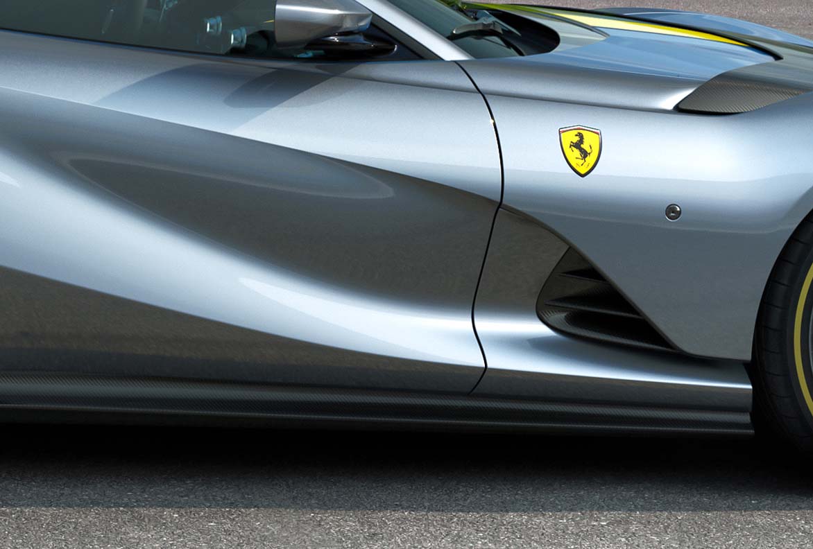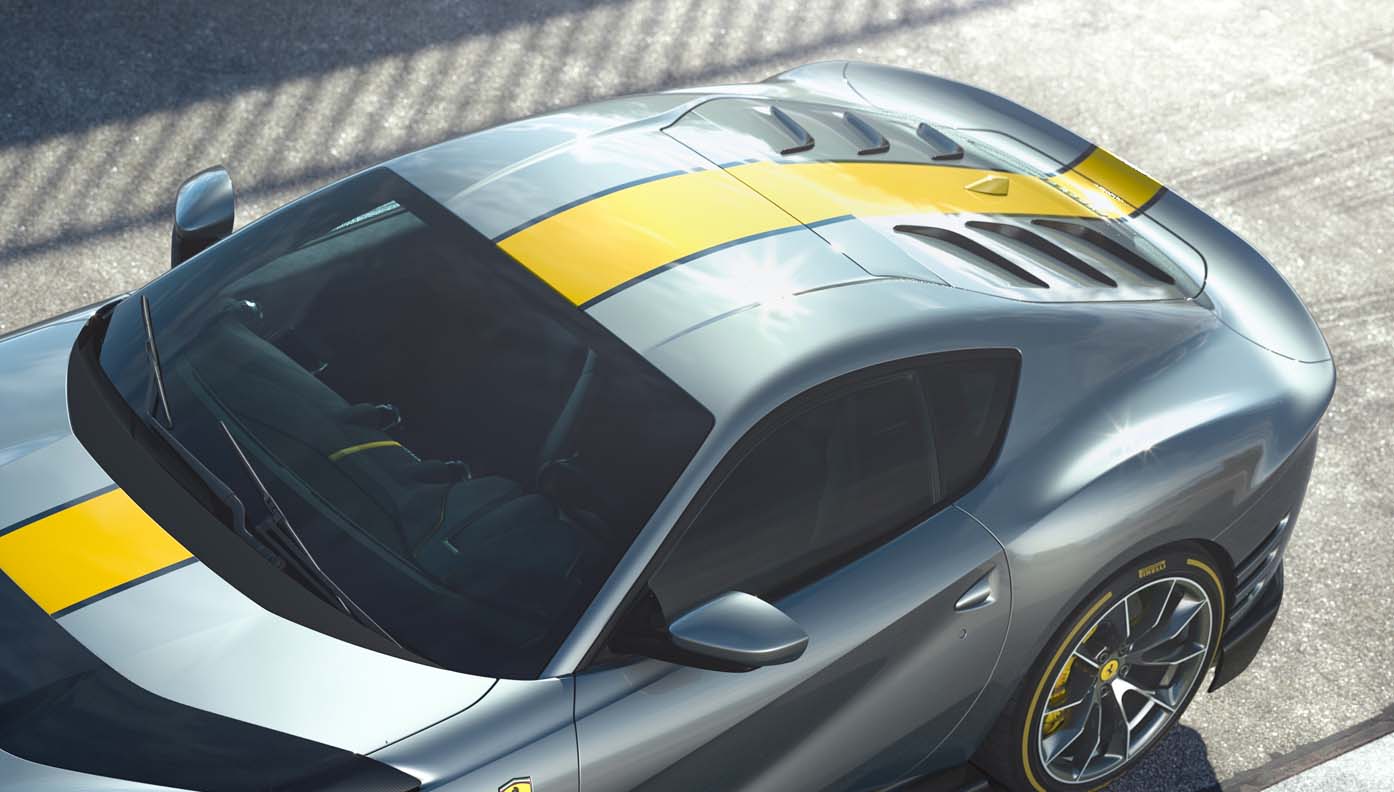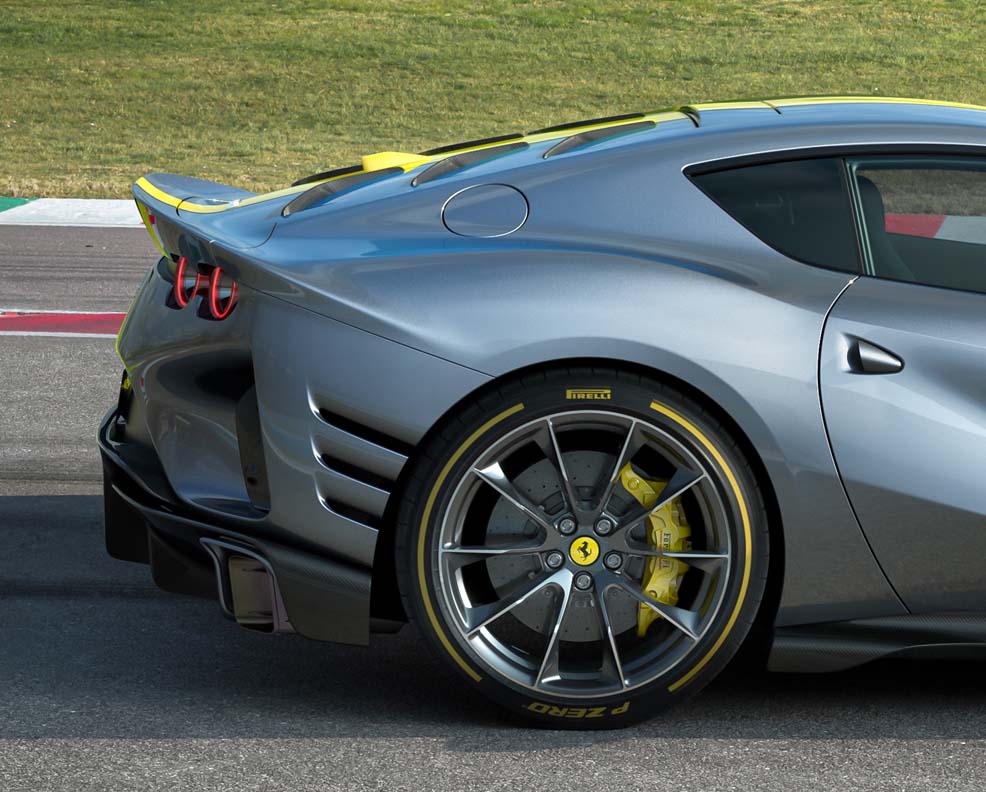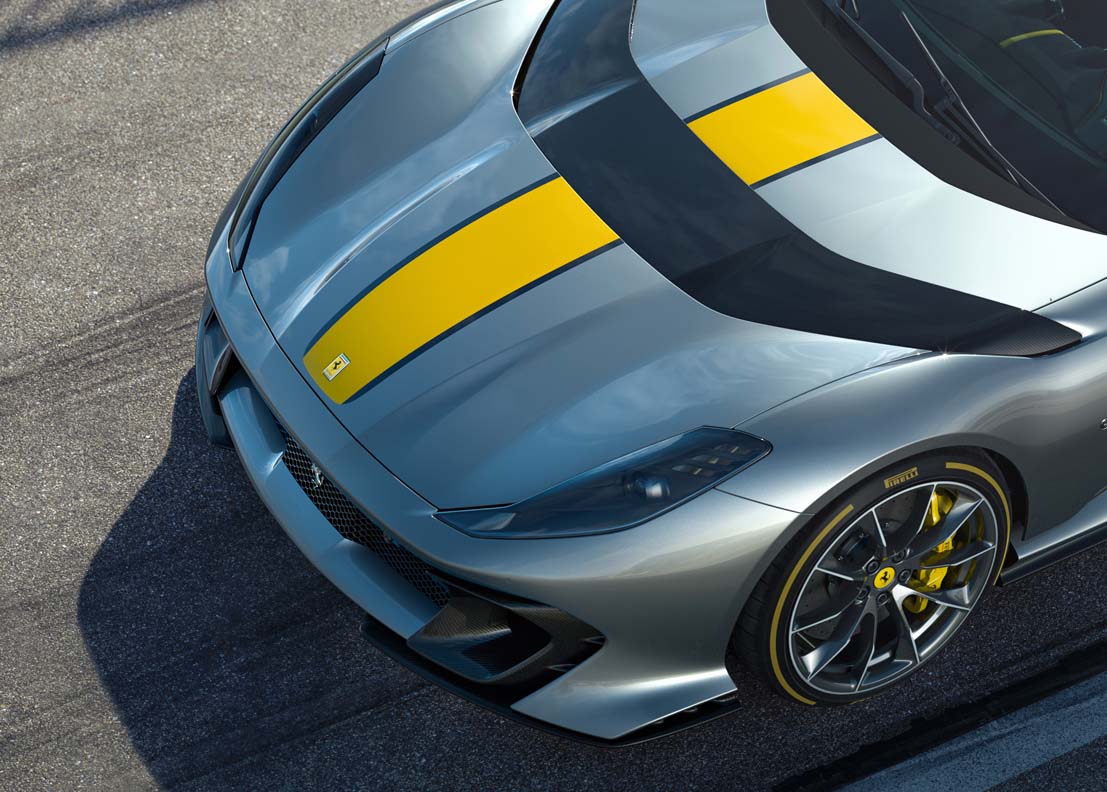 From a design point of view, this new special series has a strong personality all of its own that differentiates it significantly from the 812 Superfast on which it is based: this was achieved by choosing styling themes that further enhance the architectural design and dynamism of the 812 Superfast, pushing its sporty vocation to new extremes.