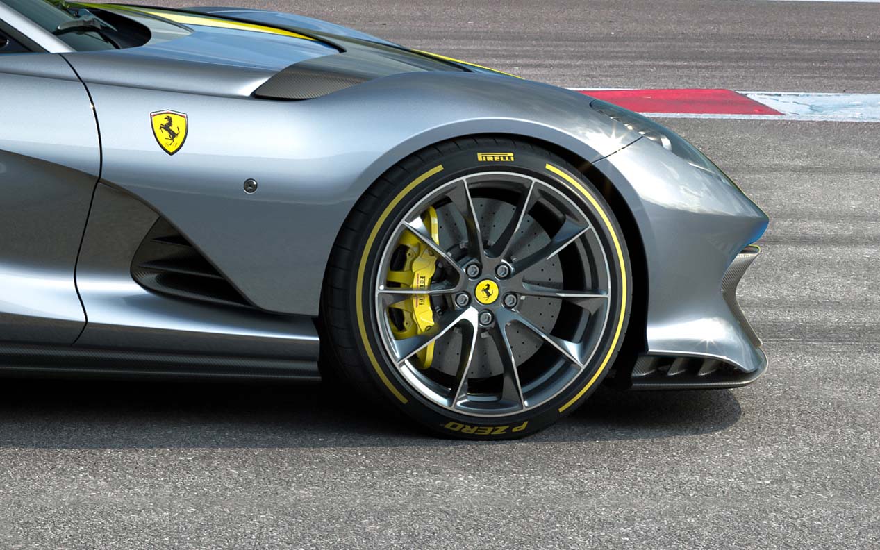 As is the case with all Ferrari’s cars, the most striking feature lies at its very heart: in this instance the latest evolution of Maranello’s legendary 65° V12 engine, which reaches the highest output of any Ferrari road-car engine – 830 cv – and revs to 9,500 rpm, again the highest of any Ferrari ICE. The use of state-of-the-art materials, the redesign of many of the engine’s key components, a new valve timing mechanism and a new exhaust system are just some of the technical solutions that allow the most noble of Ferrari engines to deliver performance levels that are unprecedented in the V12 segment.