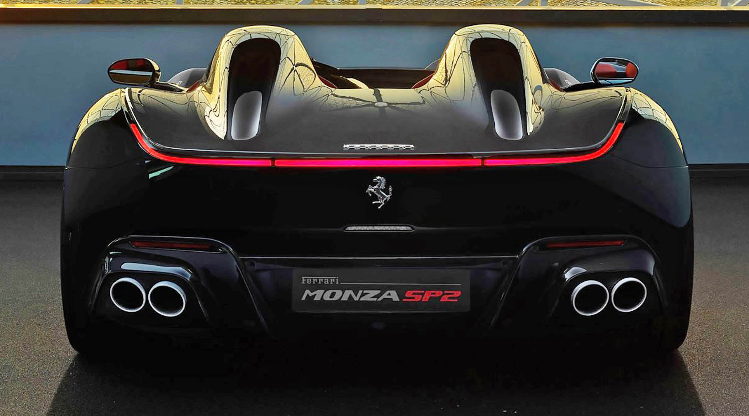 The Monza SP1 and SP2’s postmodern aesthetic is also clear at the rear which has the soft, sinuous look typical of the Ferraris of the 1950s, a compact tail and full, muscular forms.