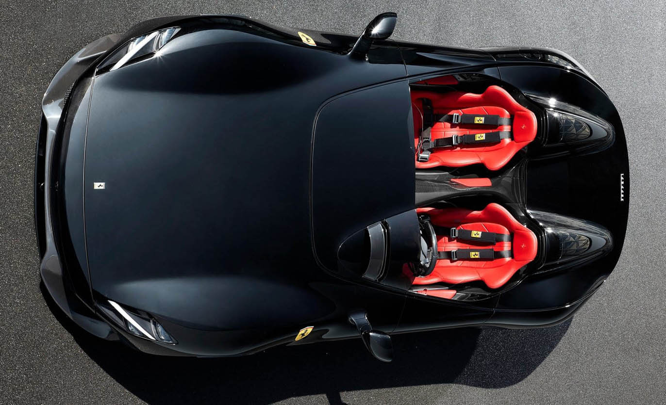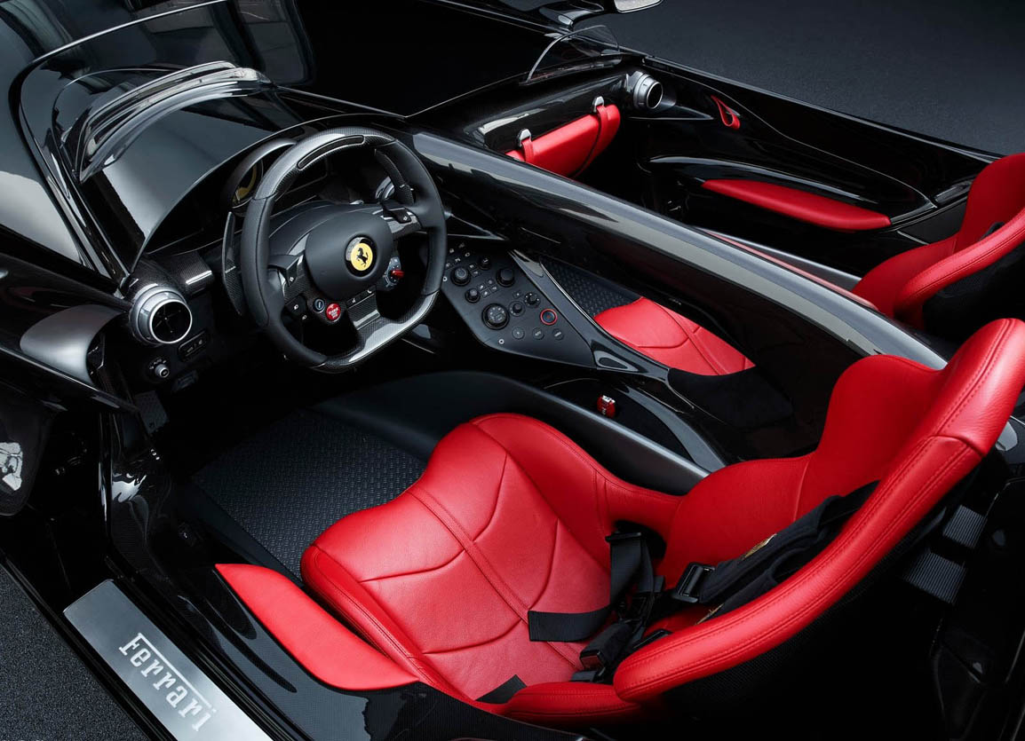 The Ferrari Monza SP1 and SP2 design language is clearly visible in its elegant forms and the wing-profile volume of the all-carbon-fibre bodyshell, in its proportions, refined details, spare lines. The extreme forms of the more extreme high-performance Ferraris have been avoided. In this instance, the Ferrari Styling Centre’s designers strove to retain a form so pure it could be described in a single pencil stroke.