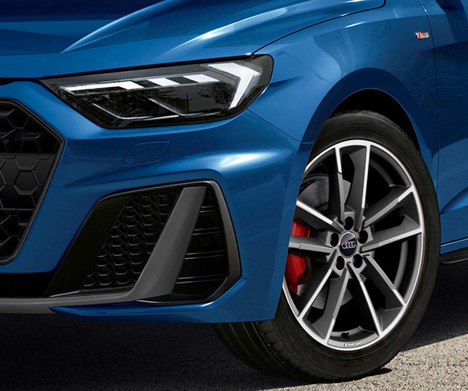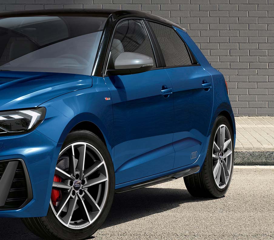 The front spoiler blade in matte platinum gray, the side mirror body in platinum gray and the laminated rings in platinum gray above the rocker panels together with the metallic paint color Ascari blue are particularly eye-catching. The S line rear spoiler in Mythos black and the diffuser clip in platinum gray complete the color options exclusive to the new equipment line “S line competition”. Fans of the A1 can also look forward to optional 18” wheels that enhance the sporty look further.