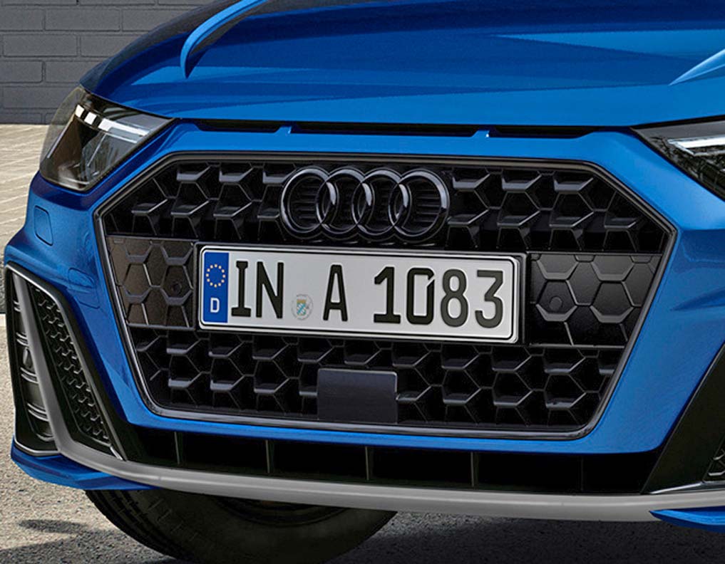 The package includes, among other things, platinum gray side mirrors and platinum gray laminated Audi rings for the paint option Ascari blue. With the roof in contrasting Mythos Black as well as the side rocker panels, the Singleframe grille in matte black and the frame in high-gloss black, the four rings in front and back as well as the badging are also in black. Combined with the darkened LED headlights and LED taillights, they harmonize perfectly with the metallic color Ascari blue, which is available for the Audi A1 Sportback 40 TFSI exclusively with the “S line competition” equipment package.