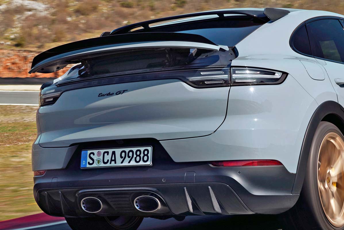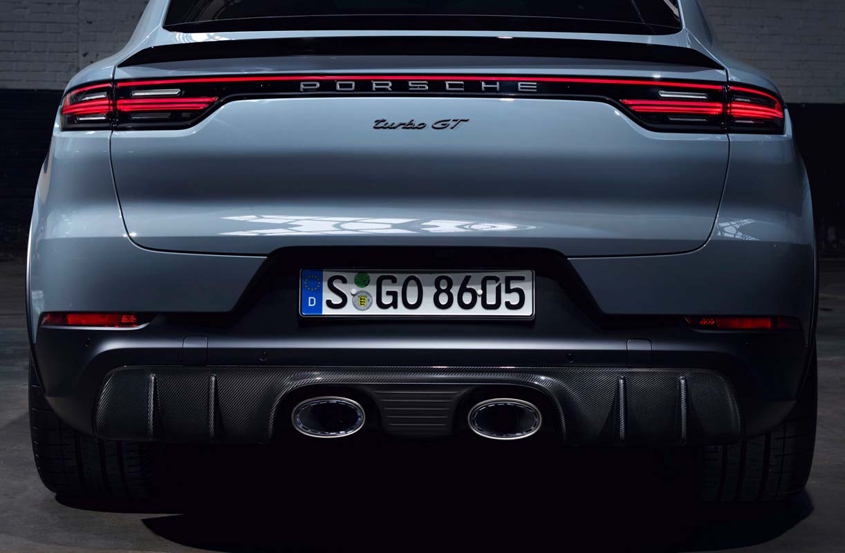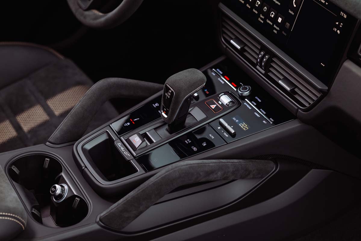 The faster-shifting eight-speed Tiptronic S and the Porsche Traction Management (PTM) system have also been modified. There is also additional water cooling for the transfer case. The standard sports exhaust system, with its central tailpipes, is unique to the Cayenne Turbo GT.