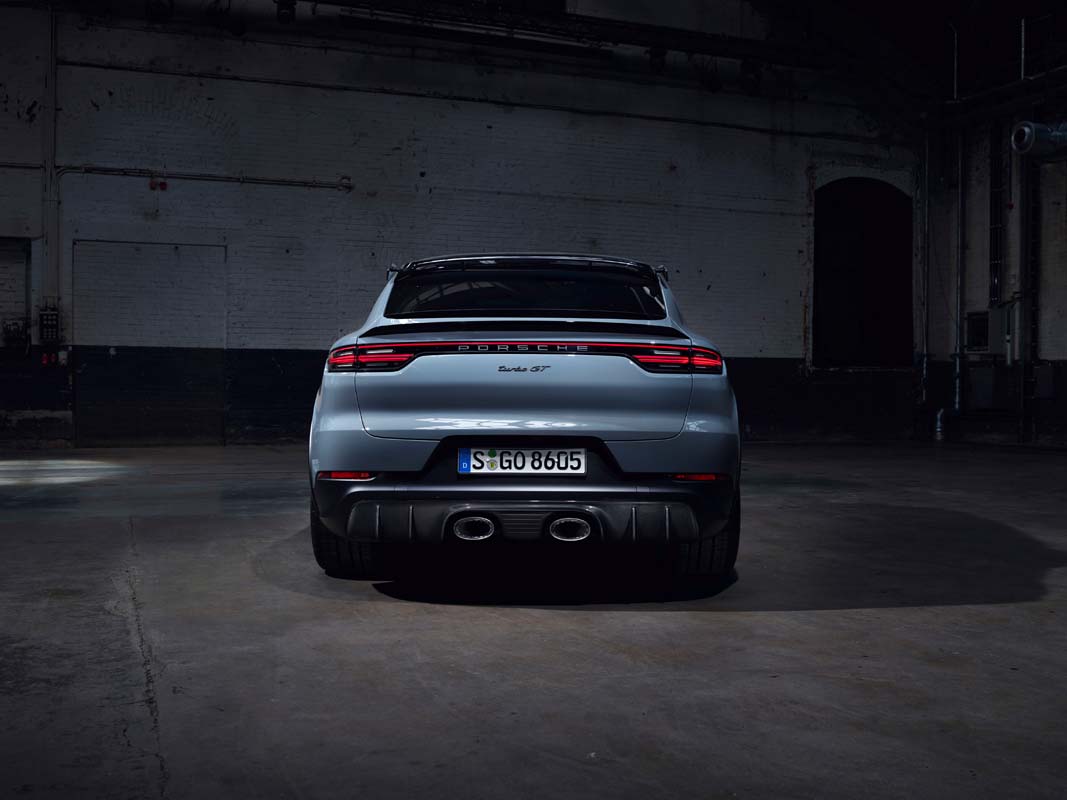 Porsche rounds off the Cayenne model range with a new sporting hero: consistently set up for maximum performance and handling, the new Cayenne Turbo GT combines outstanding driving dynamics with a high degree of everyday usability. Its 640 PS (471 kW) four-litre biturbo V8 provides the basis for superb driving characteristics. With 90 PS (67 kW) more than the Cayenne Turbo Coupé and maximum torque of 850 Nm (an increase of 80 Nm), the 0-100 km/h sprint is reduced to 3.3 seconds (0.6 s less) and top speed is now 300 km/h (an increase of 14 km/h).