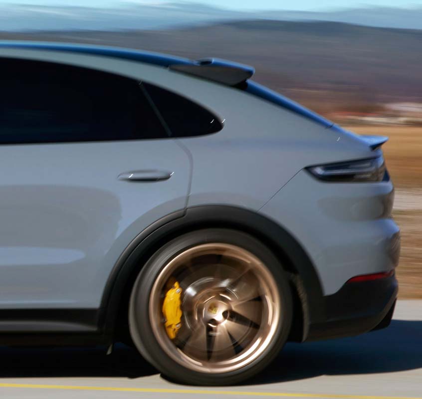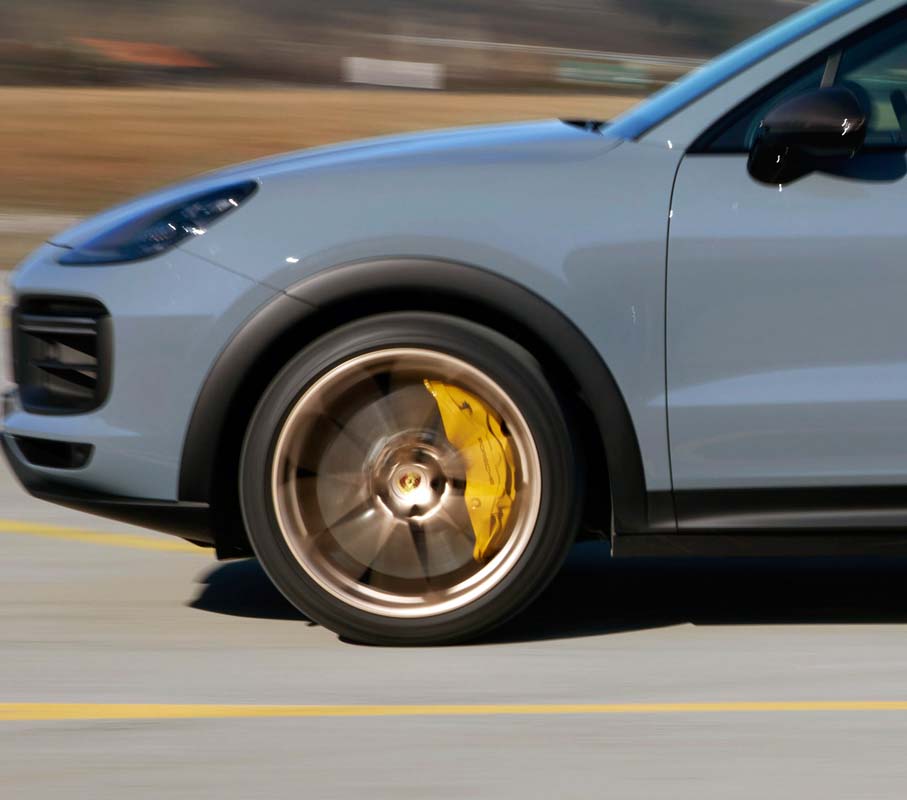 Compared to the Cayenne Turbo Coupé, the Turbo GT rides up to 17 millimetres lower. Based on this, both the passive chassis components and active control systems have been re-engineered and optimised for handling and performance.