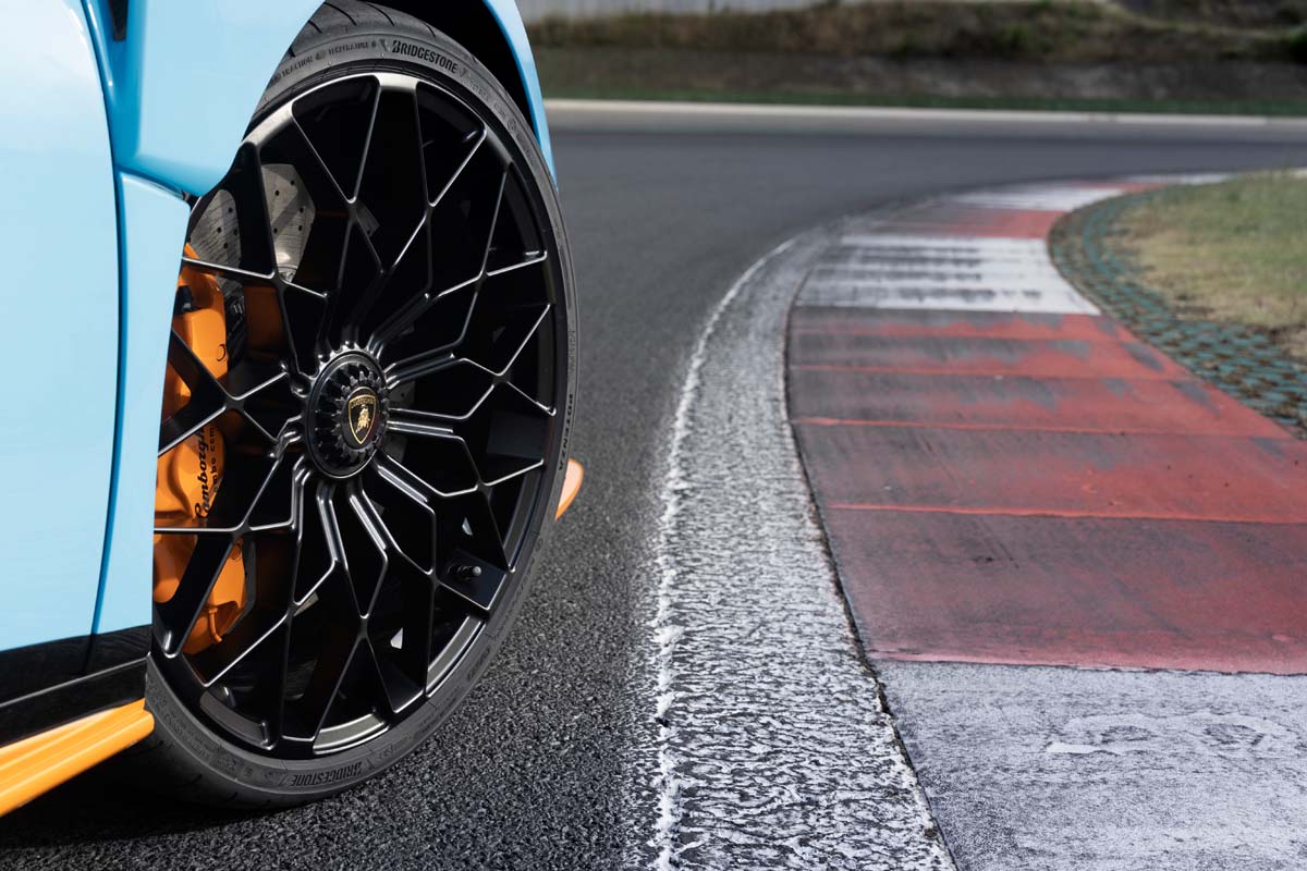 Custom-developed Bridgestone Potenza Race tyres have been designed to enhance the incredible capabilities of the Lamborghini Huracán STO and let drivers experience true high-performance. Building on Bridgestone’s long heritage in Formula One racing and high-performance vehicles, the premium Potenza Race semi-slick tyre has been tailor-made for the first time for the Lamborghini Huracán STO. As such, the tyre’s tread is lined with the colours of the Italian tricolore – a nod to the fact that both the tyre and vehicle have been designed in Italy – and features Lamborghini’s distinctive markings.