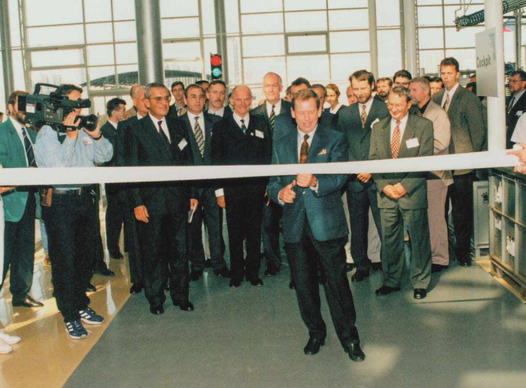 At the same time, preparations were underway to build a new production facility in Mladá Boleslav that would enable efficient modular production and the assembly of components and subassemblies delivered just-in-time. The body skeletons travelled along the assembly line on height-adjustable assembly plates, eliminating the need for hanging fixtures from conveyor systems. A new paint shop was added to the assembly line in the 37,500-square-metre, expansively glazed hall. After the grand opening of the facility on 3 September 1996, the production capacity increased by 90,000 to 350,000 vehicles per year.