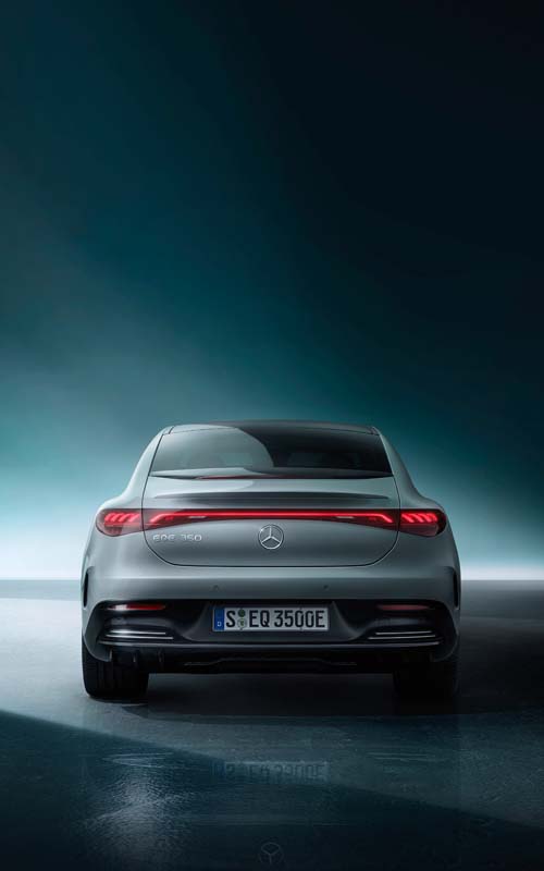 The EQE features a sporty ‘purpose design’ with all the characteristic elements of Mercedes-EQ, one-bow lines and cab-forward design. Sensual Purity is reflected in generously modelled surfaces, reduced joints and seamless transitions (seamless design). The overhangs and the front end are kept short, the rear provides the dynamic accent with a sharp rear spoiler. Flush with the outer edge of the body, the 19- to 21-inch wheels, together with a pronounced muscular shoulder section, give the EQE an athletic character.