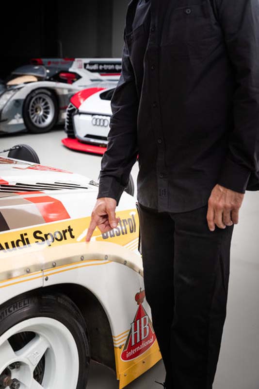 Now, during his first visit to Audi, another dream came true: the American was allowed to drive several historic race and rally cars from his favorite brand himself. These included the Audi Sport quattro S1, the Audi V8 quattro from the DTM and the futuristic Audi e-tron Vision Gran Turismo.