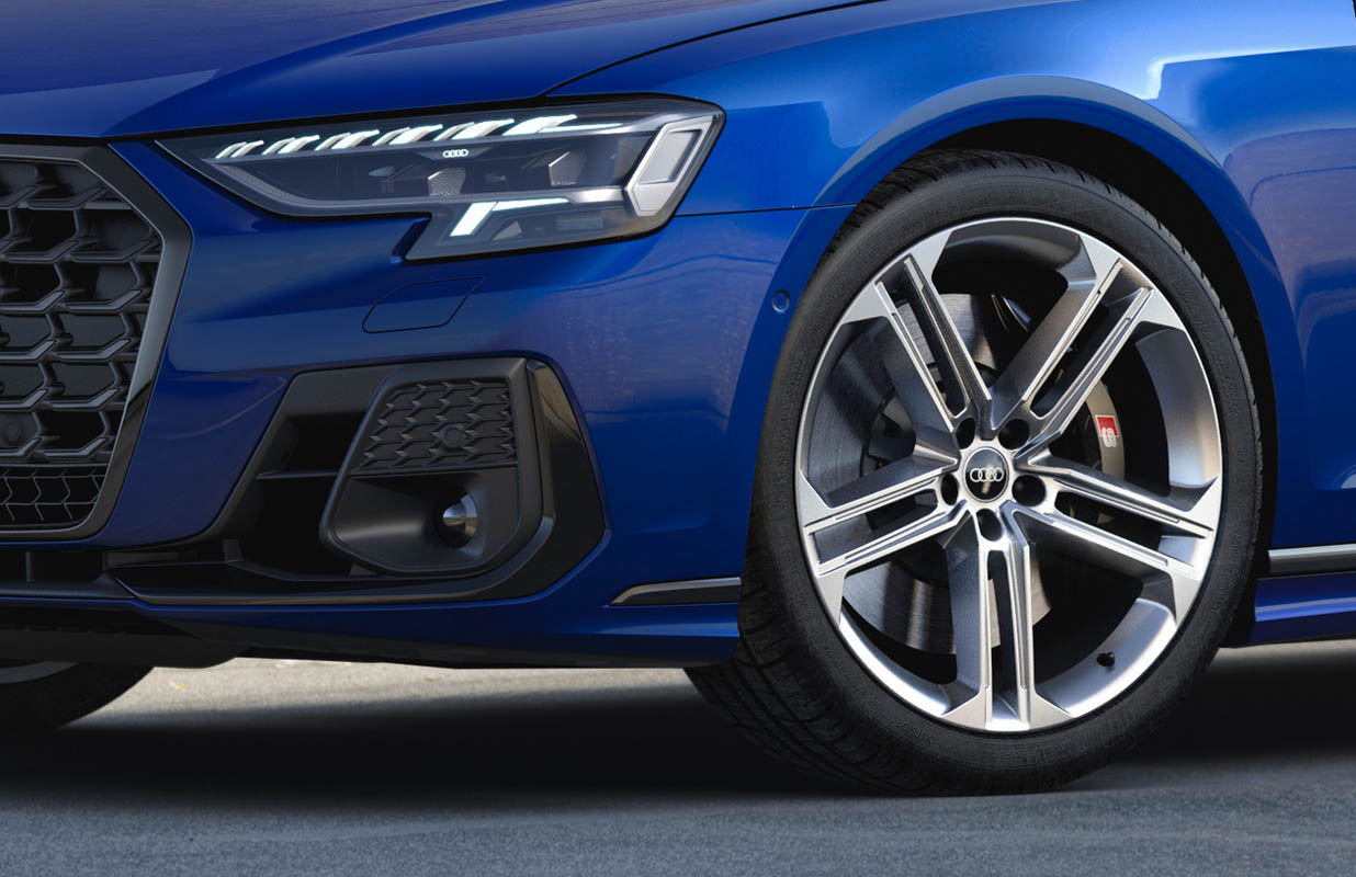 One highlight of the enhanced A8 is the predictive active suspension. It can load or unload each wheel with additional power individually via an electric motor and thereby actively regulate the position of the chassis in any driving situation. The wheel range for the enhanced Audi A8, which goes from 18 to 21 inches, includes six new designs from Audi and Audi Sport. In top versions like the Audi S81, Audi offers carbon fiber ceramic brake disks as an option.