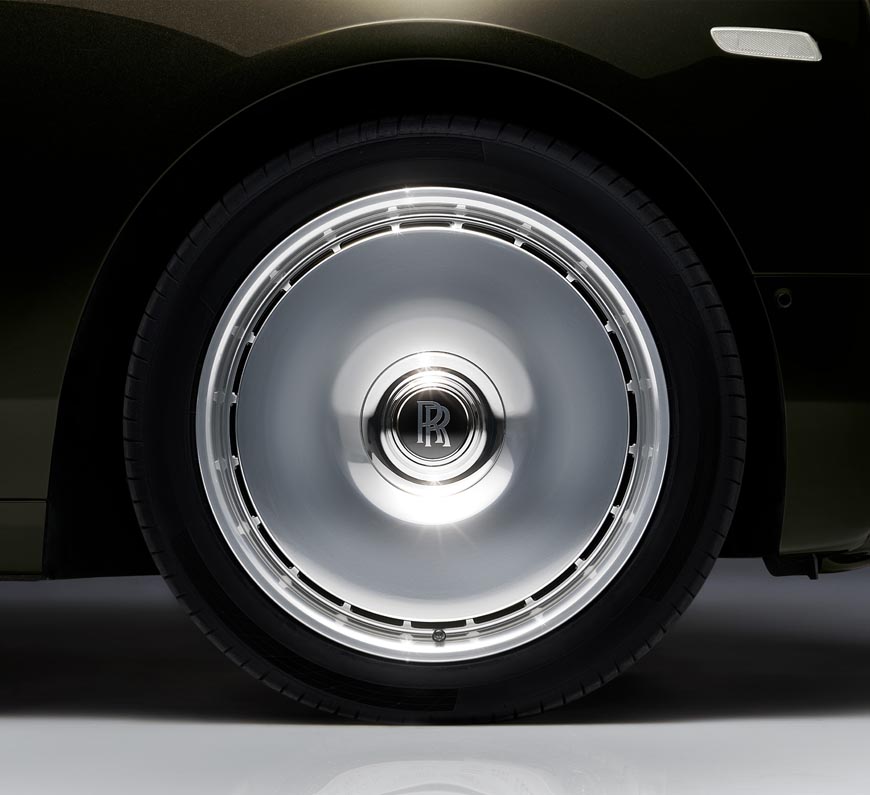 The side profile is further enhanced with a suite of new wheels. A 3D, milled, stainless steel wheel with triangular facets is available to commission in a fully or part-polished finish. Alternatively, Phantom may be graced with a truly elegant disc wheel, recalling the romance of 1920’s Rolls-Royce motor cars. This disc wheel is produced in both polished stainless steel and black lacquer, perfectly encapsulating the sense of flight on land.
