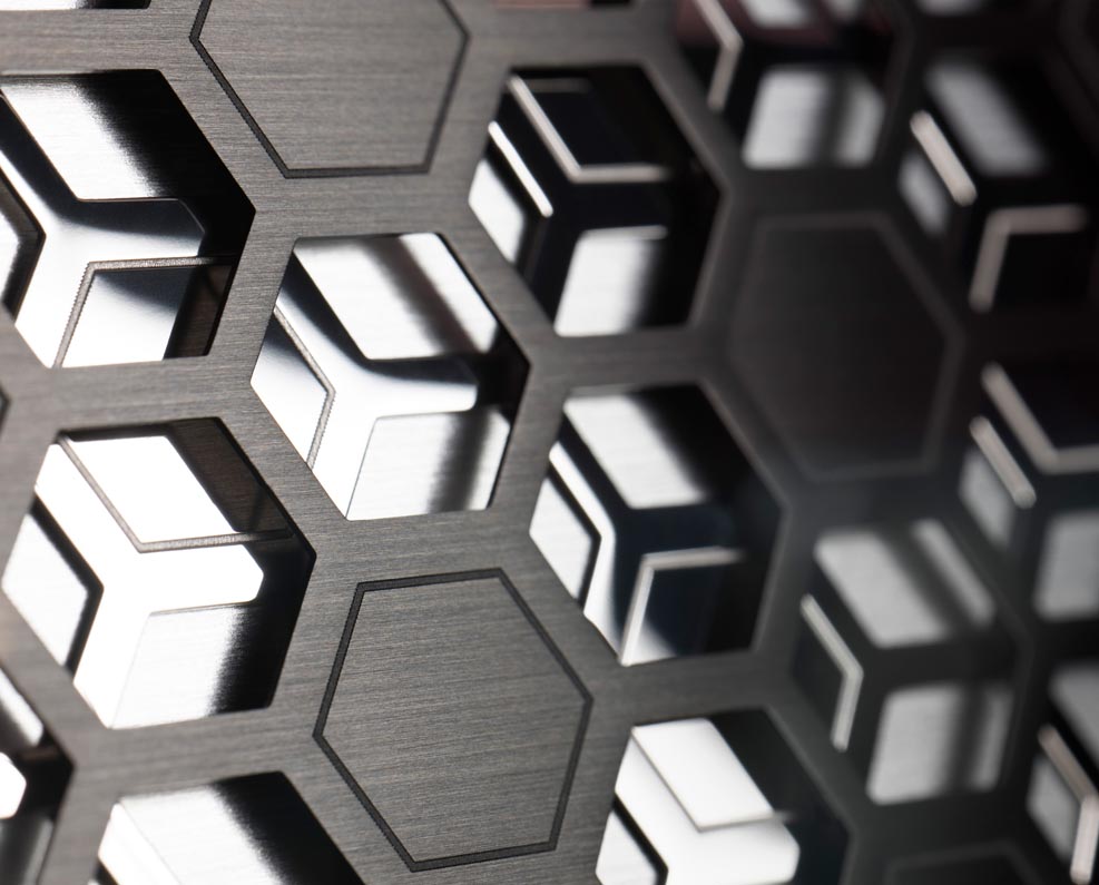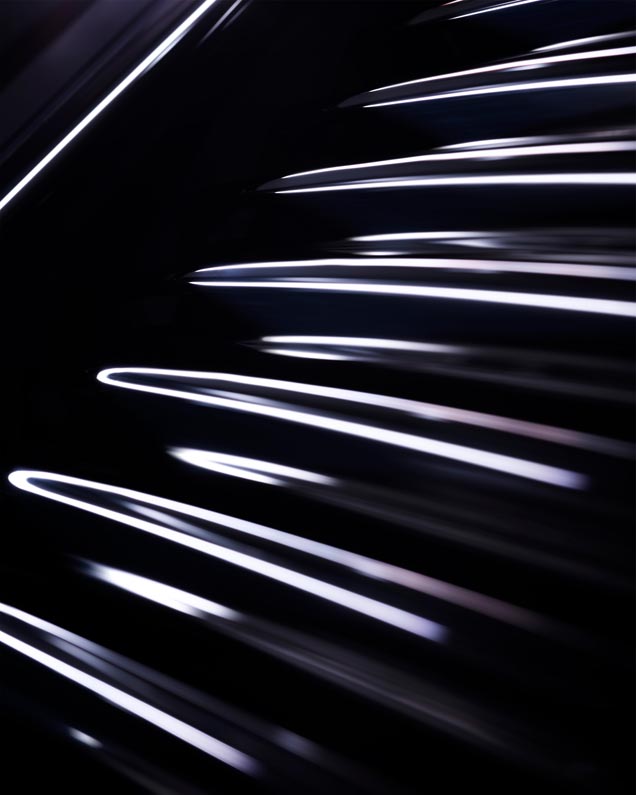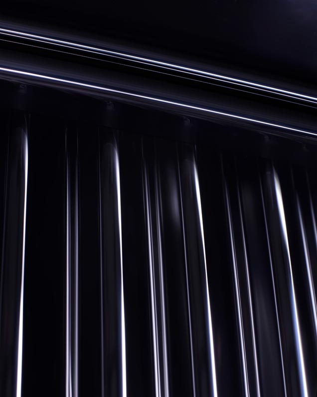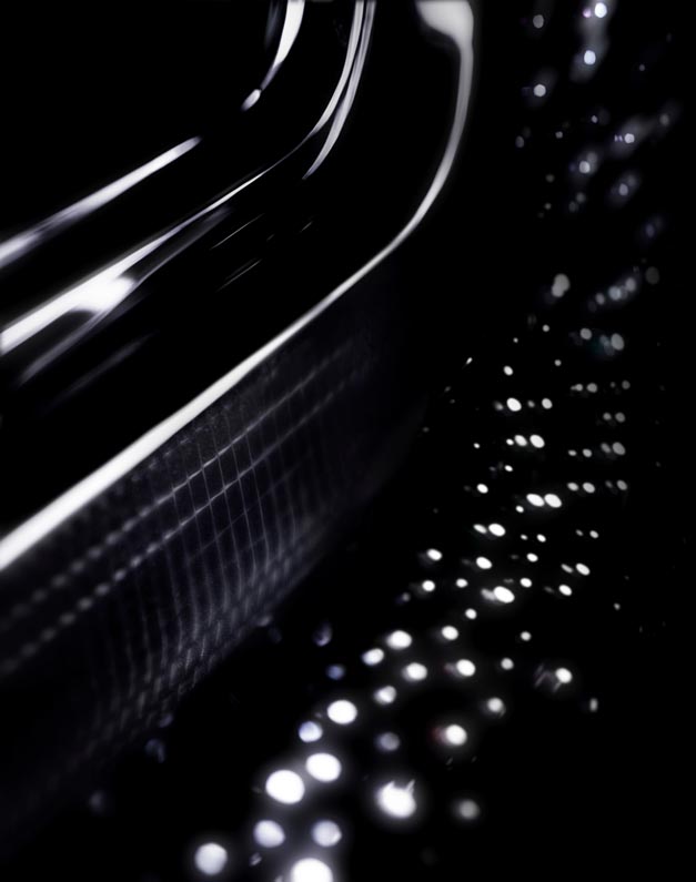 The largest canvas in Phantom is the Starlight Headliner. In a unique design created especially for Rolls-Royce Platino, the ‘stars’ are placed to draw the eye rearwards, with whimsical shooting stars following the sweeping arc of the pattern.