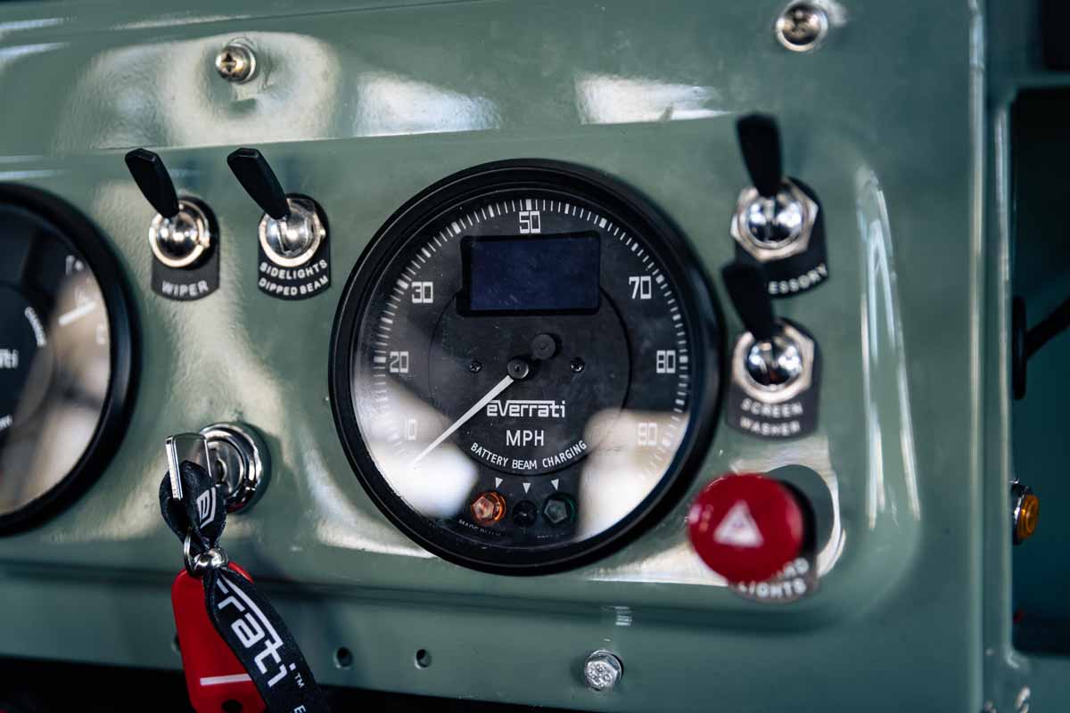 Everrati’s Land Rover Series IIA – painstakingly refined and tested at the company’s technical centre in Upper Heyford, Oxfordshire – incorporates a brand-new EV powertrain courtesy of the company’s expert team of industry specialists from world-leading OEMs. The off-roader’s 60kWh battery pack has a power output of 150bhp and 300Nm of torque reinvigorates the car’s original character, coupled with a true zero-emission range of up to 125 miles.