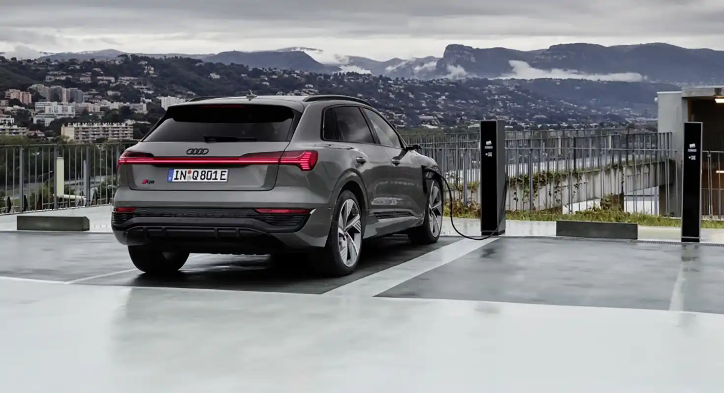 Under ideal conditions, the Audi Q8 50 e-tron can completely charge in around nine hours and 15 minutes (22kW: around four hours and 45 minutes) using alternating current. The big battery’s numbers are around 11 hours and 30 minutes at 11 kW and six hours at 22 kW. The Audi Q8 e-tron comes standard with the Plug & Charge function. At compatible charging stations, the vehicle authorizes itself when inserting the charging cable and activates the charging point. Billing happens automatically. The new charging service Audi charging, which is set to launch in 2023 and will in the future replace the existing e-tron Charging Service, will allow for convenient access to around 400,000 public charging points across Europe. The e-tron route planner provides reliable support when searching for charging points along your route.