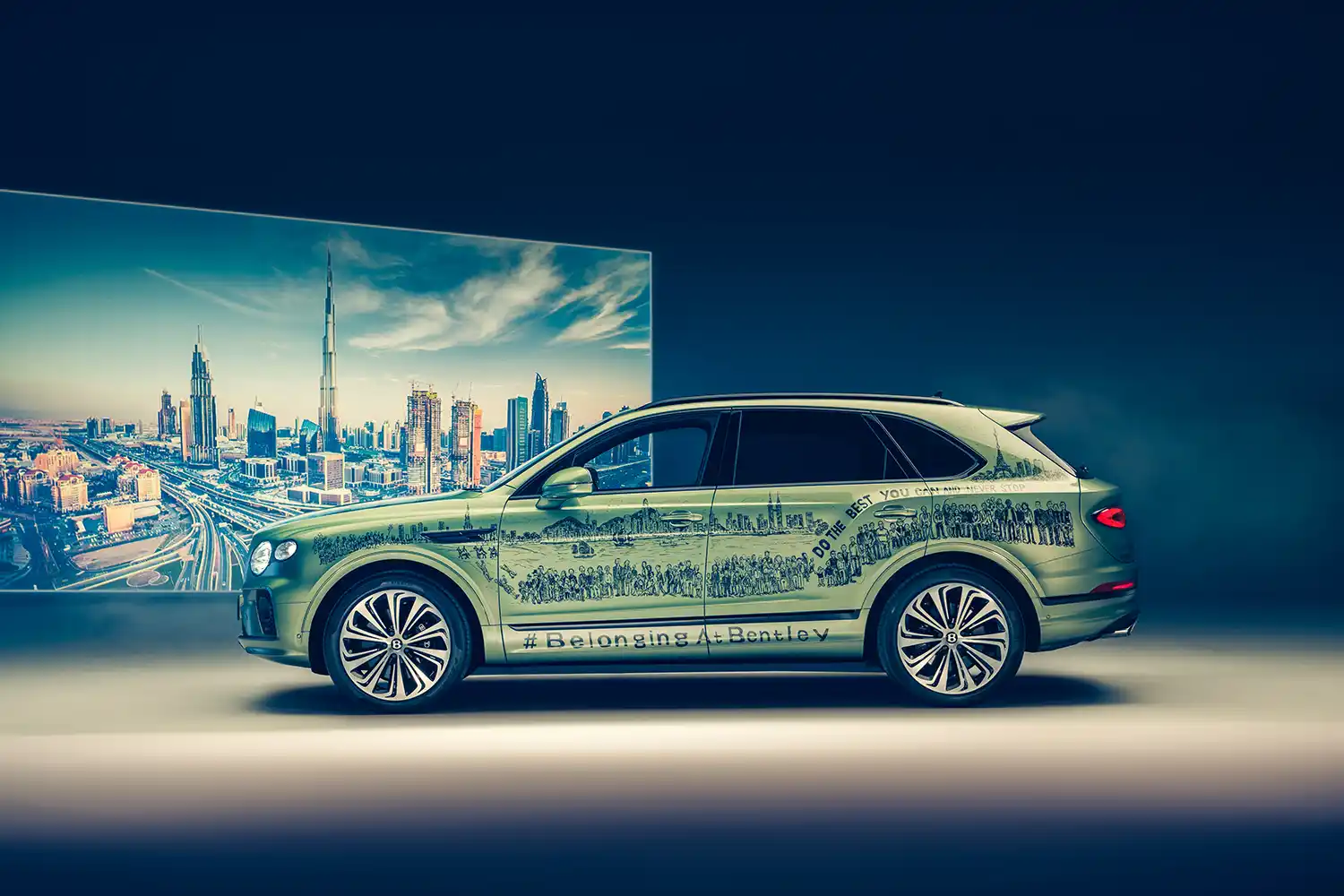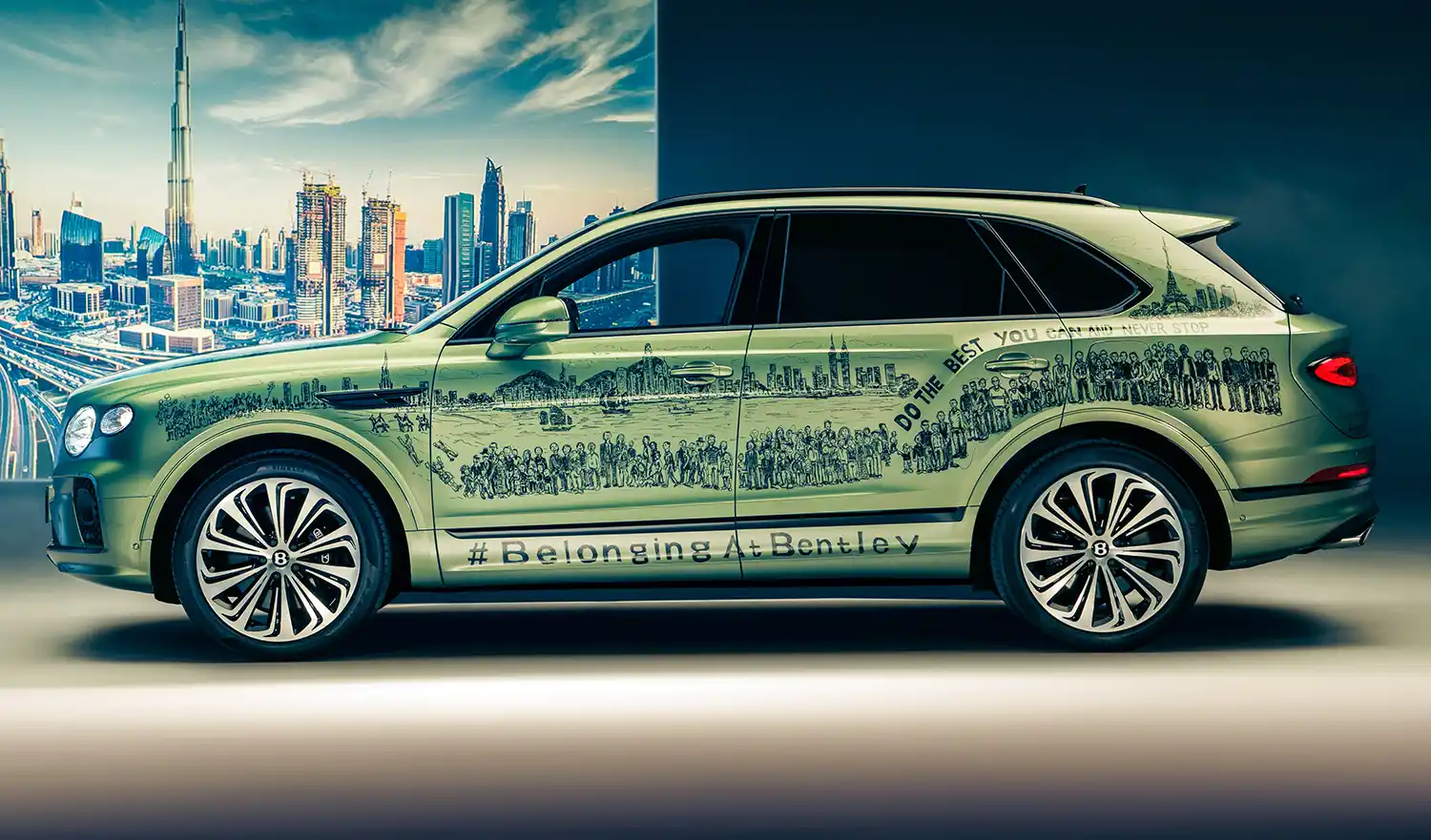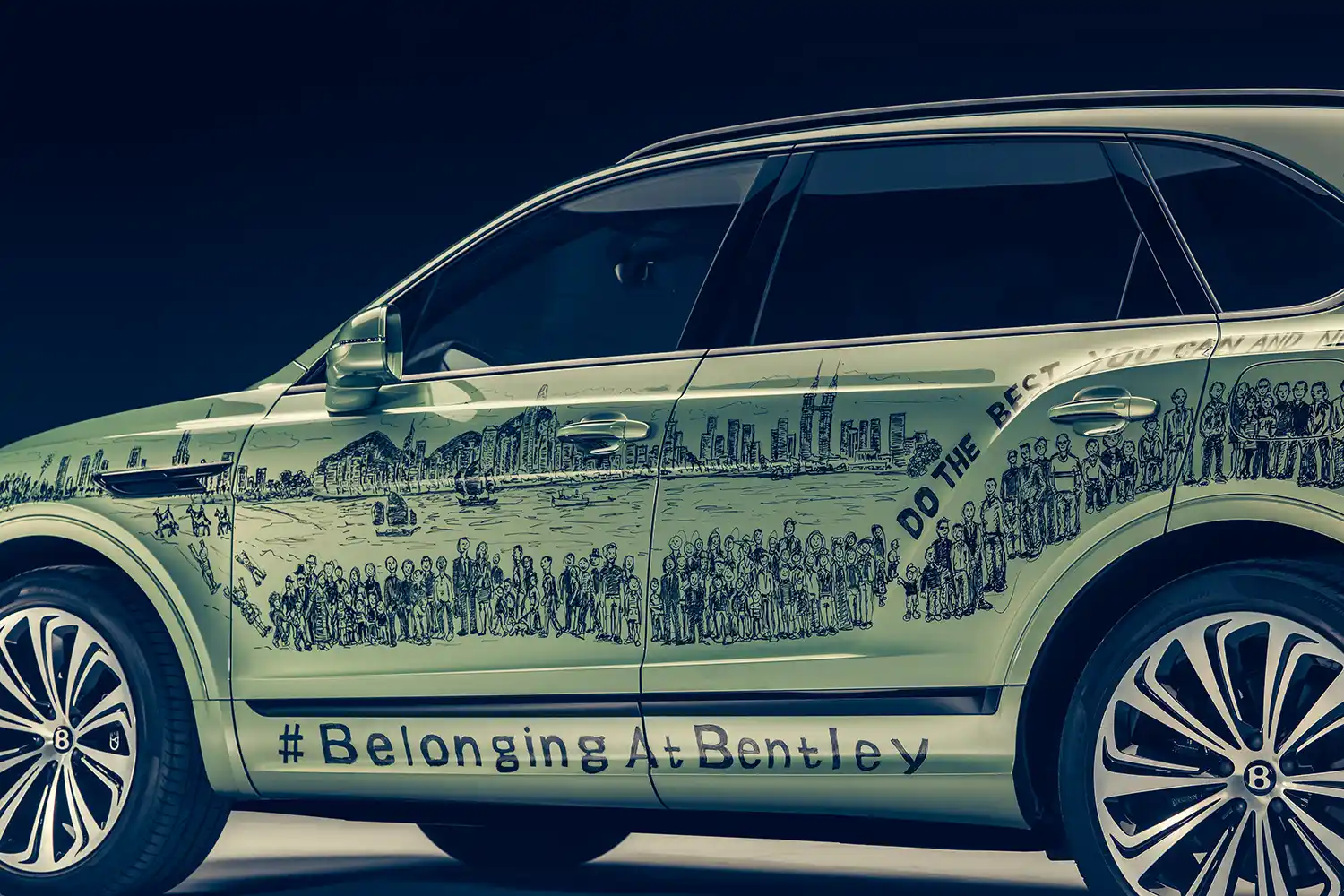 The design also includes many drawings of people, nationalities of the world united in one design. The Bentley Bentayga is the third such piece of art unveiled by the company to mark its commitment to diversity.