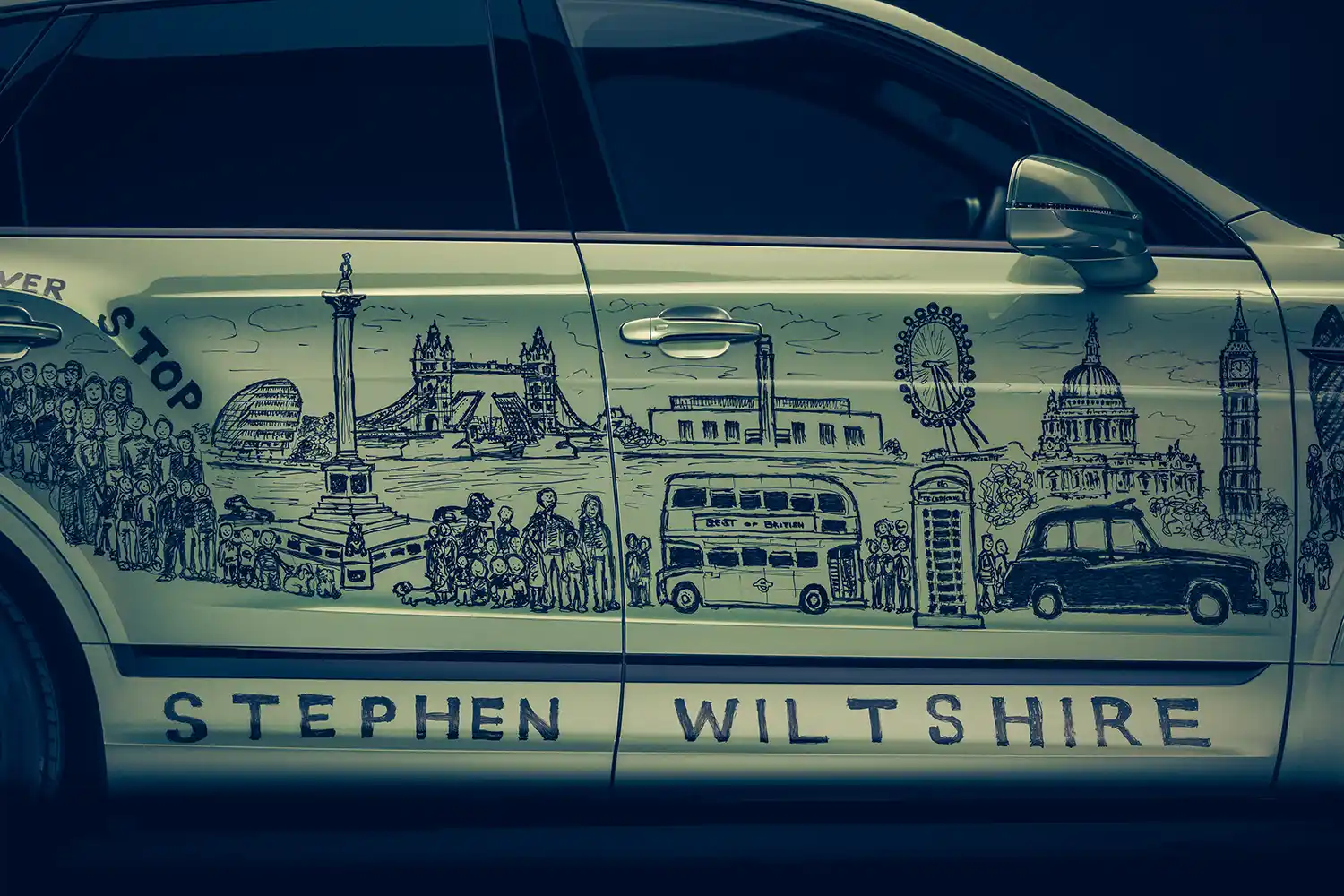 Stephen Wiltshire comments: “Buildings have a way of telling a story, where you were born, your first job, where you got married, happy memories mean happy people. I have been on many travels throughout my career and what stands out for me the most are the buildings, their architecture and the people. I believe Bentley and the Belonging Bentayga relate in the same way, bringing people together, creating a journey, creating memories. My art has always been about existing and connecting. The Belonging Bentayga was a great challenge for me but I like to be challenged as it tests my ability, and it also proves that if you put your heart and soul into it, you can overcome anything. I am very proud of the finished car which in my humble opinion looks amazing!”