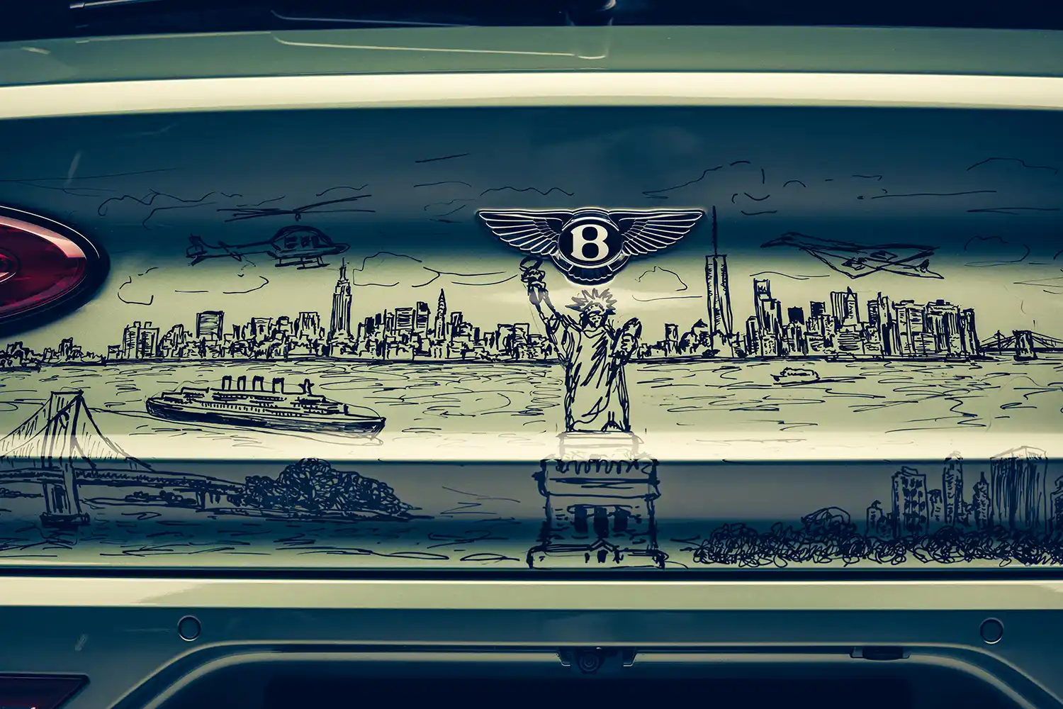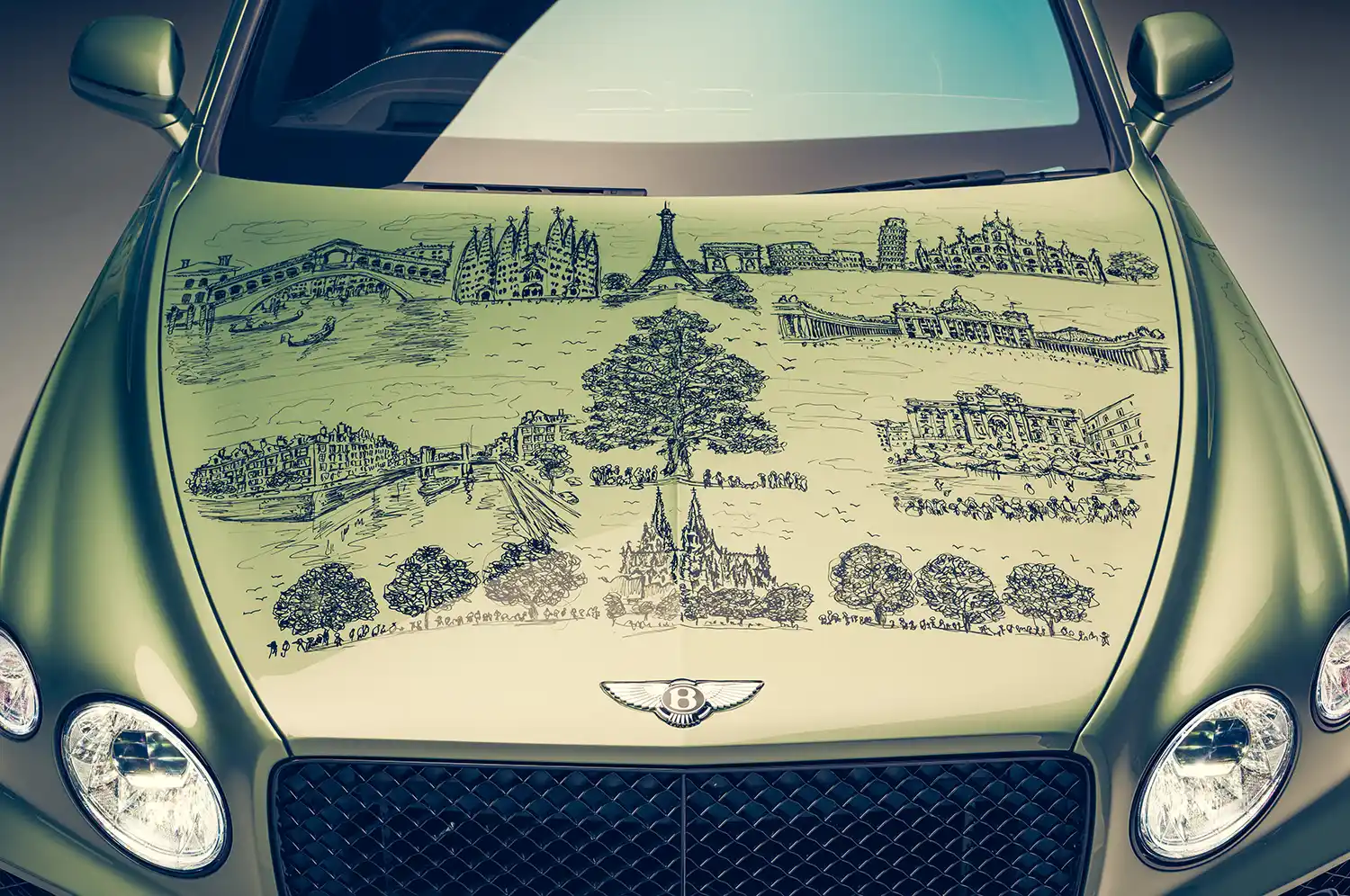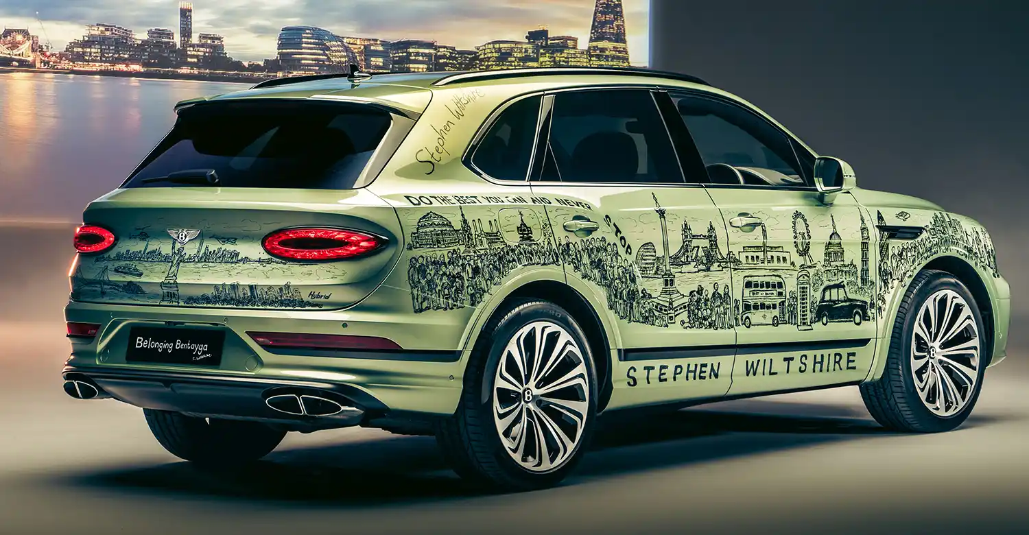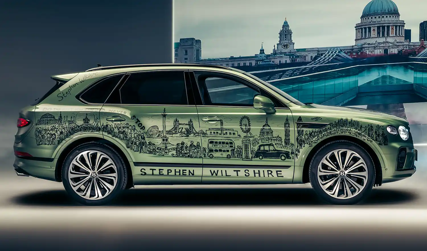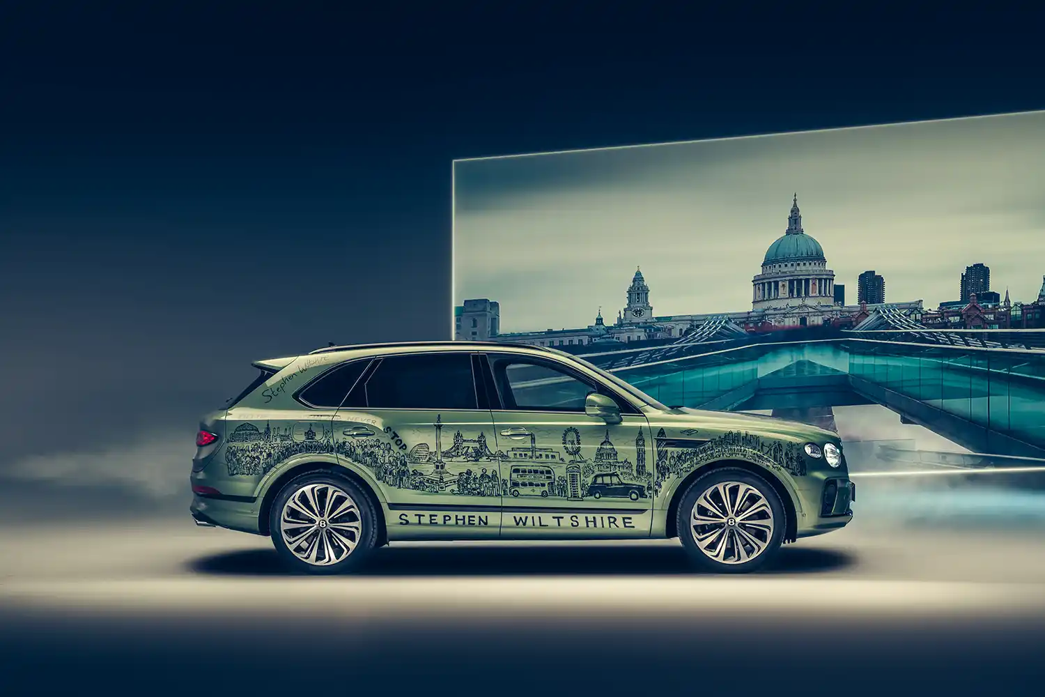 As the next step in its mission to become the most diverse luxury car manufacturer in the world, Bentley Motors today launches the ‘Belonging Bentayga’. This unique hand painted Alpine Green Bentayga Hybrid features different skylines and well-known buildings from all across the world such as New York, London, Paris, Rome, Milan, Venice, Tokyo and Hong Kong – each side of the car representing a different continent. The art piece that displays 29 different landmarks is drawn from memory by Stephen Wiltshire MBE, a British architectural artist and autistic savant, who is known for his ability to draw a landscape after seeing it just once.