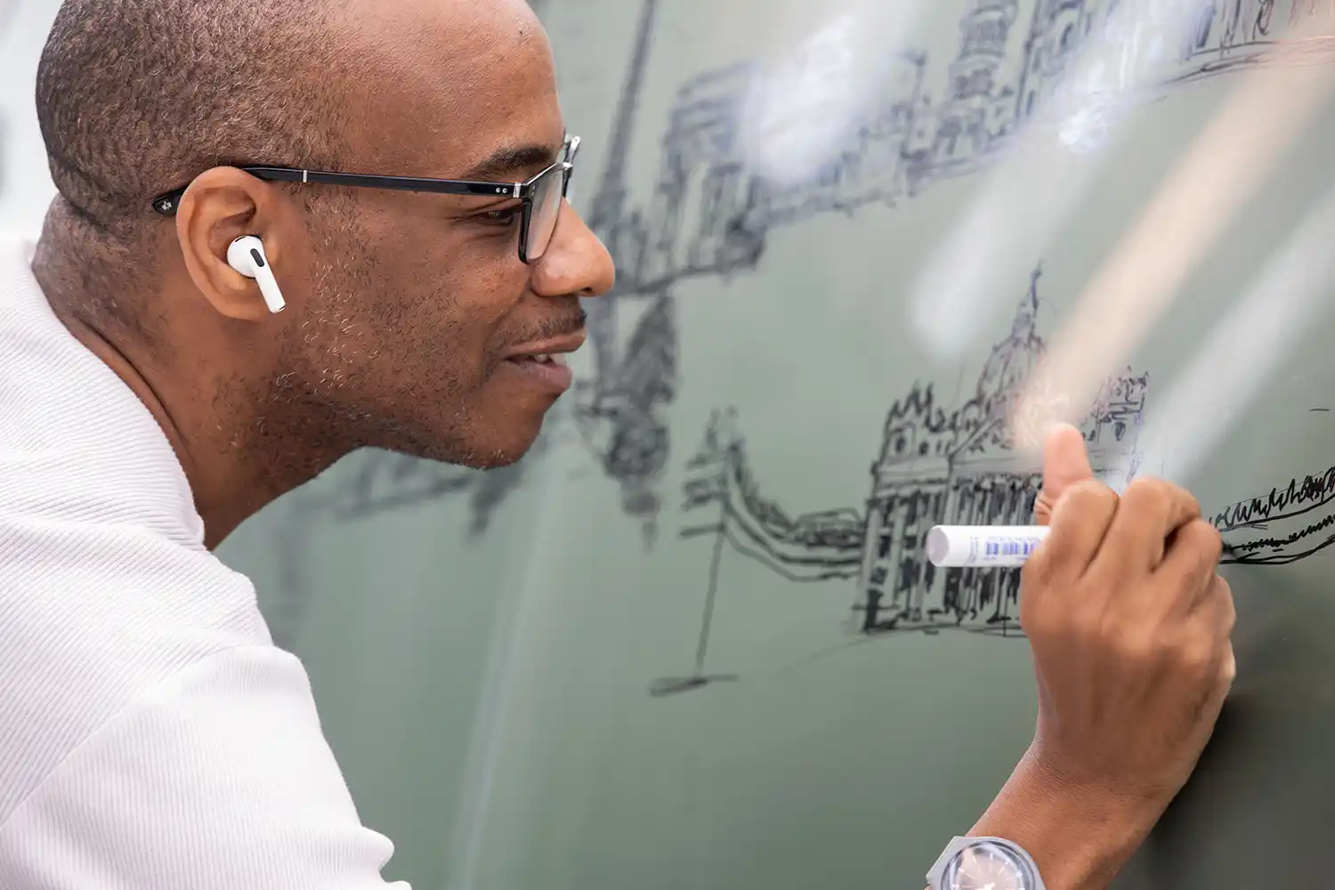Stephen Wiltshire was born in London to West Indian parents. As a child he was mute and, aged three, was diagnosed with autism. However, his family and teachers soon realised that rather than using words, Stephen communicated through the language of drawing. He started with animals before graduating to buses and finally buildings. His sketches, detailed cityscapes which feature a subtle wit, have earnt him plaudits from around the world.