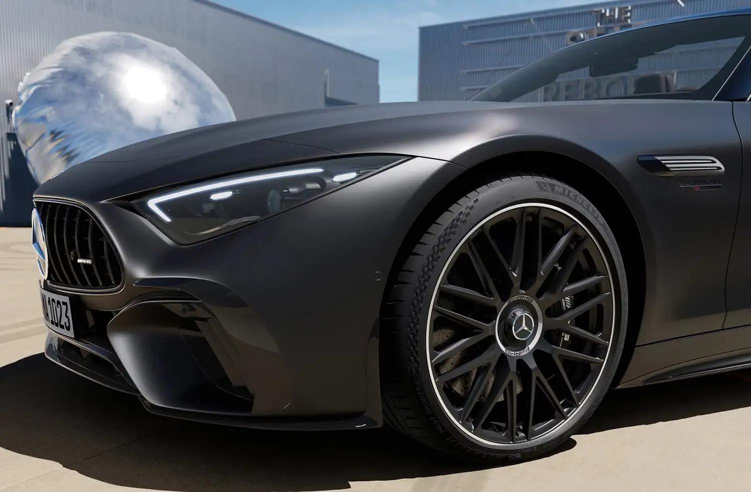 The exclusive identifying feature of the new top model in the SL series is the rear section. What’s new here is the integrated plug-in loading flap and the model name highlighted in red. There are also grooved trapezoidal twin tailpipe trims on the outside. The “E PERFORMANCE” fender badge on the side indicates the exclusive drive. As standard, the hybrid rolls on 20-inch multi-spoke AMG light-alloy wheels. They are aerodynamically optimised, painted matt black with a high-sheen finish. The dimensions on the front axle are 265/40 R 20 on 9.5 J x 20 and on the rear axle 295/35 R 20 on 11 J x 20.
