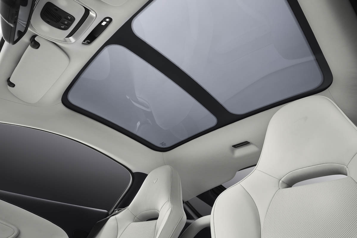 The rear luggage bay is accessible via a full-length, rear-opening glazed tailgate with a strong, stiff and lightweight carbon fibre frame. A soft-close function is standard; buyers can specify electrically powered operation as part of the optional Premium Pack. The glazed C-pillars, rear window and rear quarter windows are also available with privacy glass.