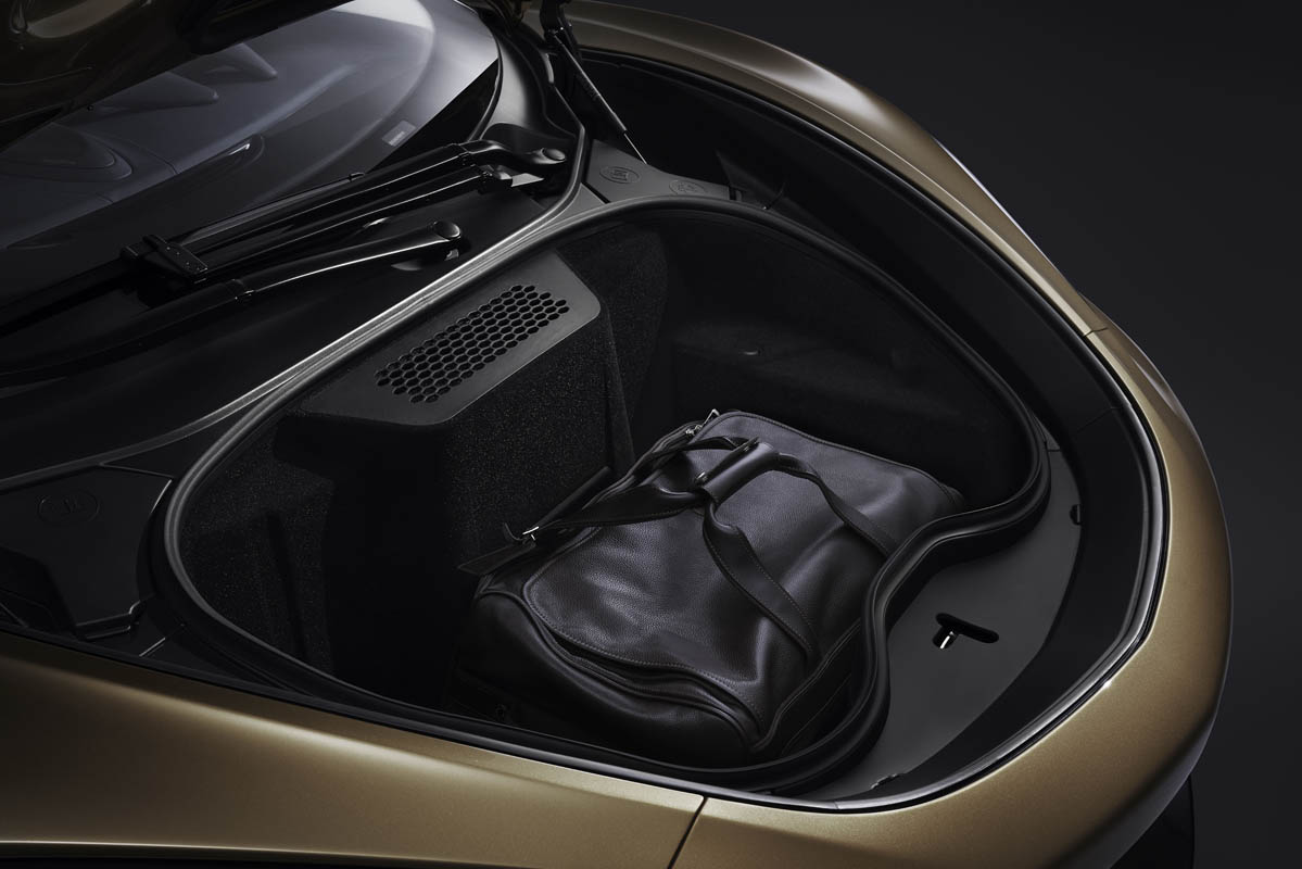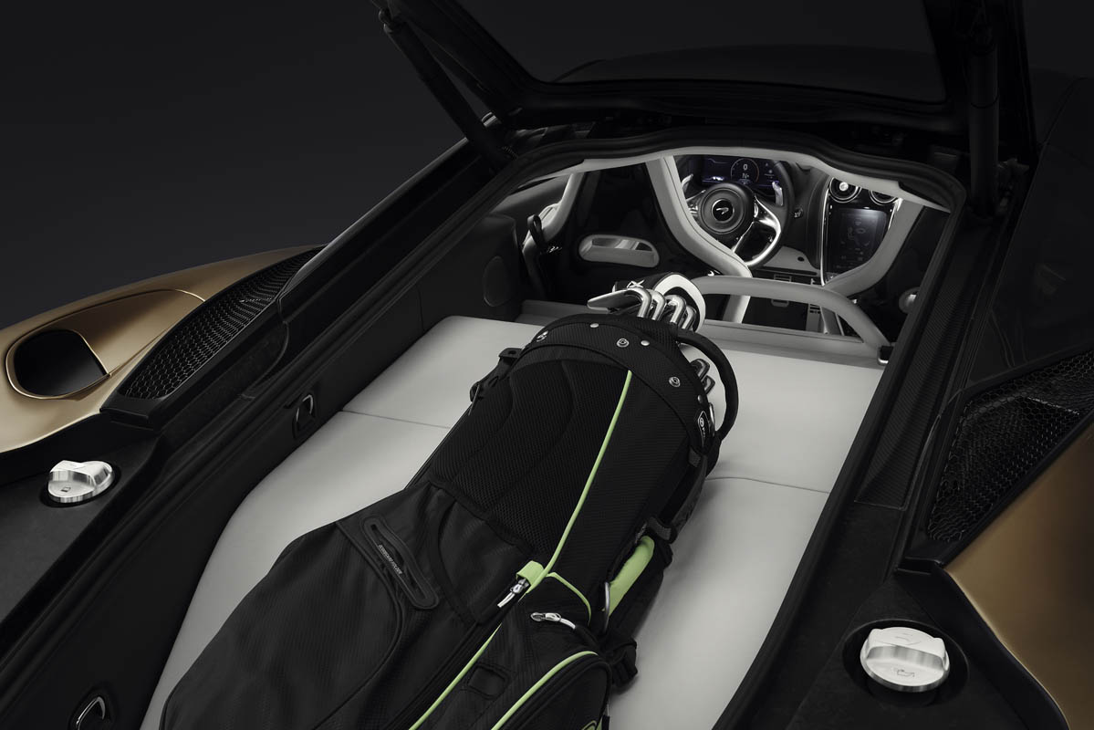 The low height of the engine and positioning of the exhaust system has allowed the volume, shape and usability of the luggage bay to be optimised. A golf bag or two pairs of 185cm skis and boots as well as luggage can be carried with ease, while a further 150 litres of storage at the front means the new McLaren GT can accommodate a total of 570 litres.