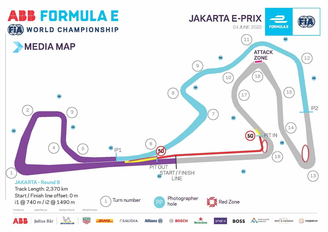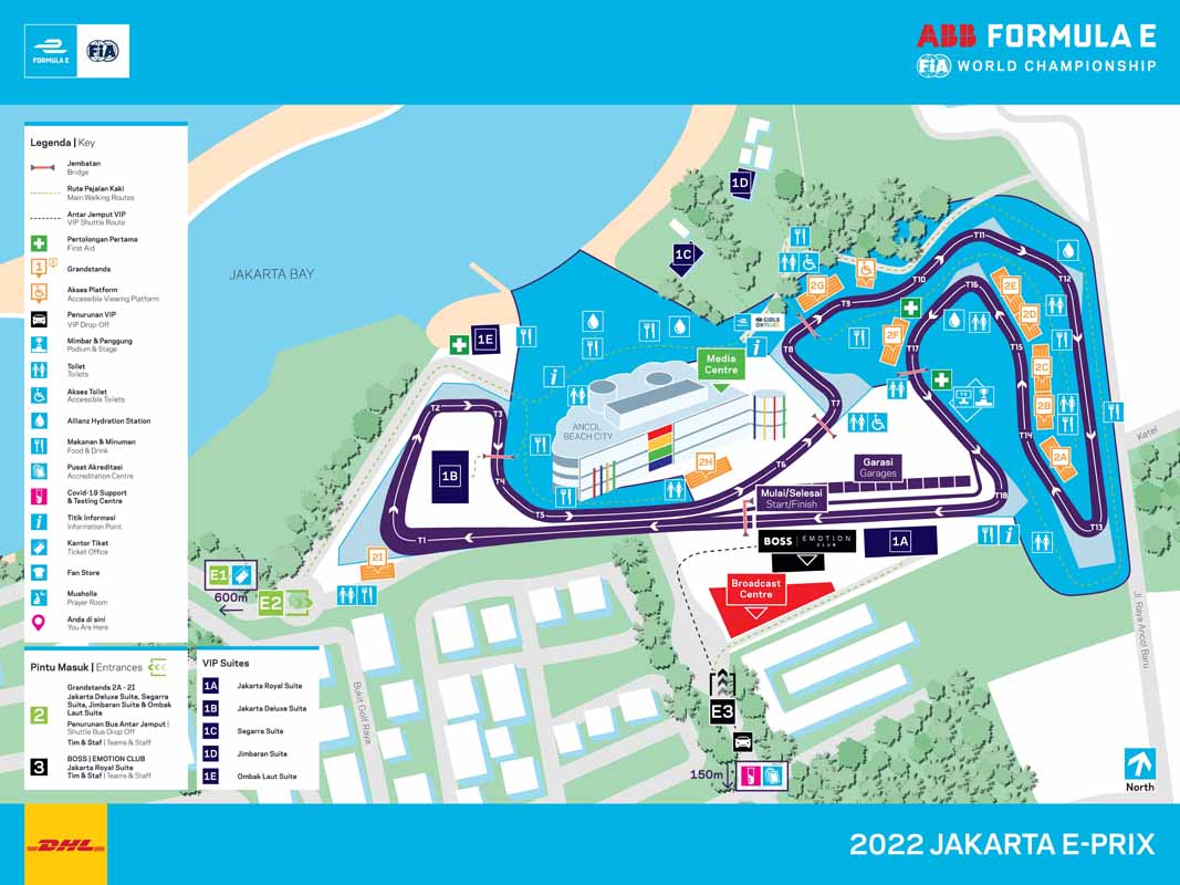 The first FIA-sanctioned motorsport event to be held in Indonesia since 2006, the Jakarta E-Prix will take place on a purpose-built track, whose challenging 18-turn, 2.37km layout – tight-and-technical and fast-and-flowing in equal measure – snakes around the Ancol Beach City resort in the northern region of the country, against the backdrop of Jakarta Bay.